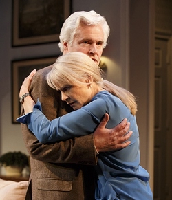 Discussions about morals, the law, and social acceptability are endless, mechanical, and inconclusive. Not including Gail as an onstage character cheapens Kenny's relationship with her and the baby, and corrupts the "extended family" atmosphere Ryan so desperately wants to establish. Even the intended-to-shatter "climax" and resolution of the central quandary is limp, dwelling less on the development of their thoughts and spirits than on what they learn when they google "fetal cerebral malformation"not exactly riveting stuff. Only O'Connor combines the play's left and right brains, and gives a beautifully aching rendition of a haunted woman facing her most dreaded ghosts. Petherbridge swings too far in the other direction, letting Kenny's rage and sorrow be almost too suffocating to be real, but his attempts are genuine. The others stick mainly to the surface, and seem to be just hitting their marks from director Martin Charnin, who has staged adequately but with little grace on a lovely suburban-Connecticut set by Beowulf Borritt and Alexis Distler that Ken Billington has sensitive lighted. If In the Secret Sea (the title refers to Joyce's doctor's term for her womb) never completely succeeds, it's an admirable effort, and one of the most fearlessly serious and human plays I've ever seen. Its refusal to rely on tricks and tropes is refreshing, as is its eschewing the easy answers and tidy conclusions so common in the morality plays of our current, iffy era. It insists you consider it fully, wherever your personal opinions may fall, and you sense that it perceives you as a thinking, caring person. Impossible? Well, yes, you'd thinkbut I can't recall the last time I felt so... respected by a play. I was not, however, moved in any way but intellectually, remotely. Ryan's every word lands, but none of them perform that rarefied magic act of coalescing into something that transcends its innate falseness to become truer than reality itself could ever be. That ought to be where fact stops and theatre begins, but both fail to achieve their preferred destinies. The resulting show may not be greator even goodbut it's a fascinating and thought-provoking one nonetheless.