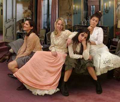 I just had my first sighting of one of the latter at the PIT, a zippy little comedy called Women, written by Chiara Atik and based on the premise that the March sisters in Louisa May Alcott's classic nineteenth century family novel Little Women (Jo, Amy, Beth, and Meg) were the prototypes for such modern fare as the hit HBO show Girls. Indeed, Ms. Atik, writing for the entertainment mag Vulture, pressed her case that "were the March sisters to trade hoopskirts for rompers, they would probably be able to pass for Hannah, Marnie, Shoshanna, and Jessa, the four protagonists of Girls." The fast-paced (50 minutes) Women, a goofy sendup of Little Women, is having a brief run here before heading out to the Hollywood Fringe. The PIT (Peoples Improv Theater) is the perfect venue for the show, which does have a feel of improvisation through its quick-flash scenes aimed at the under-30 crowd, who are encouraged to bring their beers into the theater and use their cell phones to take pictures and tweet their comments while watching. But even those not well-versed in the ins and outs of Girls will recognize the mashup of styles of Alcott's world and our own. When the sisters are with Marmee, their loving mother, the tone is very polite and formal. When they are together, they behave like sisters everywhere: at varying times chatty, gossipy, competitive, sharing, supportive, and self-absorbed. Ms. Atik is a caricaturist, using quick pen strokes to endow each of her characters with specific personality traits to make them uniquely identifiable. Jo is the tomboy/lesbian feminist writer; Amy is the sensitive artist with a penchant for limes; Meg is the ditzy blonde who believes she wants the traditional life of marriage and motherhood; and Bethwell, she's the one with the constant and annoying (to her sisters) cough. (SPOILER ALERT: as we enter the theater, we see a projected image on a screen, with the heading #Bethdies) . Women is less a flowing play than it is a series of short comic scenes, played out almost the way that an old style radio serial might, with a short burst of music between each segment. While it is definitely played for laughs, there is actually an emotional core to it as the girls grow up, go out into the world, and join up with some pretty decent menMeg's Mr. Brooke, Amy's Laurie, even Jo's unexpected pairing with Professor Bhaer, who befriends her during her stay in New York (where they attend a rave and dance to Icona Pop's "I Love It.") The members of the cast have absorbed their idiosyncratic bits of shtick and perform them to the hilt under Stephanie Ward's direction. Like Fannie Brice in Funny Girl, Rachel Lin as Beth is a "natural cougher," Layla Khoshnoudi as Jo struts around the stage like the dude she sees herself to be, and Lydian Blossom is the affectionate-from-a-distance artist. Best of all is Abby Rosebrock, who has found a touch of real truth in Meg, who learns that there is more than a little drudgery in the day-to-day life of a wife and mother. The rest of the cast (Vicki Rodriguez as Marmee, Bradley Anderson as Mr. Brooke, Zac Moon as Laurie, and Stephen Stout as Professor Bhaer) do a fine job as well, with Brett Epstein taking on several smaller comic roles. (I especially like the bit when he turns up suddenly as the sisters' brother, "Carl March," acting as if he'd been there all the time.) By the time the cast hits us with a Christmas homecoming and a round of "Ding Dong Merrily On High," you might find yourself surprisingly touched at the way the "girls" have grown into women. After that, all that's left to do is to wish everyone well as they head out to the Hollywood Fringe!