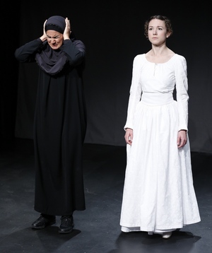 Living in the Victorian era is Tillie (Felicity Houlbrooke), all dressed in white as if heading out to tea. Her counterpart is a modern Muslim teen, Samira (Filipa Braganca), wearing a black hijab. Both reside in Ipswich, England, and both long to flee its repressive environment, go out into the world where they might do some good, and perhaps put some adventure into their lives. For Tillie, the escape route is an offer of free passage to India and marriage to a young British officer. "There are no men in Ipswich," she says, "only a succession of squinting dullards." And so it's off to India, marriage to a lieutenant, and, later on, a transfer to Afghanistan where the men are sent to defend British interests. For her part, Samira gets caught up in the hard-sell allure of joining the jihadists and doing something positive for the millions of Syrian refugees. "This is my choice. Paradis . . . or Ipswich. The shadow of God's kingdom on earth, or a land of chip papers and dog shit." Both young women find out quite quickly that they have bitten off way more than they can chew. Tillie is witness to the harsh lives and violence that mark her new surroundings. And the man she married, a stranger really, is heartless and abusive to her and to the people whose lives are being impinged on by the unwelcome British presence. In Syria, Samira finds even more violence in a land where women have no standing other than as servants and sex objects. The writing and the portrayals are so thoroughly compelling that we are pulled immediately into Tillie and Samira's worlds. How could such intelligent and independent young woman have fallen into these traps? We both fear for them and root for them as they struggle mightily and courageously to undo the ungainly knots in which they have become tied. Despite its brevity (under an hour), and using only the alternating stories offered up by two very talented performers, Echoes, codirected by the playwright and Emma Buttler, packs a wallop as it serves as a sad reminder that history repeats itself, with only subtle variations, generation after generation.