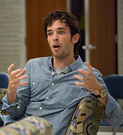 I cannot remember, across my many years of theatregoing, any play that depended on the F-word more heavily than this one. To be fair, Kuritzkes typically uses it in its verb form, as innocently as it's possible to use, I suppose, rather than an outright curse. Still, by my count it's deployed 136 times in the 95-minute play and 79 times in the opening scene alone! "And" and "the" are vying for placement that good. Does this matter? Yes and no. Like it or not, that word and the behavior associated with it still carry a tremendous amount of power; playwrights know that or they wouldn't use it. (Sorry to invoke Mamet again, but he's a master of exploring just what may be done with it.) But used the way Kuritzkes does, the word lacks any strength or substance: It feels either like a gimmick, an attempt to strip the word of any influence or importance, or both. Fair enough. In either case, the question then becomes: What does he do with it? What indeed. The title derives, as you can probably already guess from the in-use vernacular, from a Saturday shindig held by six friends during their freshman year in college. "We thought 'orgy' sounded vulgar," explains Speaker (Jake Horowitz) early on. As with many things here, irony is heaped all around that statement. During his opening speech (which runs a full half-hour), Speaker describes how the group participated in their love-in, which started off skirting the ceilings of ecstasy but ended somewhere much darker when Barry and Alison's, uh, lovemaking became violent and apparently non-consensual while Todd rescued Allison, Linda and Stevie looked on in horror, and Speaker masturbated to the spectacle.