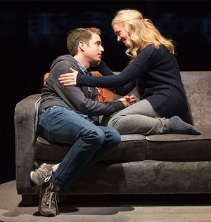 Facing a similar, but perhaps more troublesome dilemma, are the show's writers. Steven Levenson has crafted a powerful, astute book that delves deep into the psychologies of loneliness, doubt, and groupthink, and demands we rethink the way we can allow socialized grief to consume our lives. And Benj Pasek and Justin Paul's sensitive and searing pop score is, at its considerable best, superior to anything heard on Broadway this past season, and among the top five for many years before that. Unfortunately, they have not entirely figured out how to get these essential elements to work together. They have, at the very least, ensured that it's almost impossible not to care about Evan (an unparalleled Ben Platt) and his plight. Every single thing that occurs directly concerns it, and all the characters are tightly within his sphere. His mother, Heidi (Rachel Bay Jones), is an overworked nurse who's studying nights to become a paralegal, and thus never sees her son; he's secretly in love with Connor's sister, Zoe (Laura Dreyfuss), who must hold together her parents, Larry and Cynthia (John Dossett and Jennifer Laura Thompson), after her brother's death; and his school friends, Jared and Alana (Will Roland and Kristolyn Lloyd), link up with him for purposes of their own. This initially complex tangle of interrelationships only gets more complicated and fascinating as the story unfolds, and Evan's spreading and thickening lie accumulates unexpected consequences (Evan grows increasingly close to the Murphystoo much so for his mother's comfortand he attains Internet celebrity he lacks the maturity to deal with). This was clearly laid out by a serious playwright with a firm grasp on the issues, and Levenson, whose previous plays in New York include The Language of Trees and The Unavoidable Disappearance of Tom Durnin (both for Roundabout), pulls no punches along the way.
