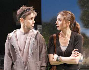 Though depending on your relationship with your parents, you may be movedor annoyedmore than you anticipated. For despite the graveyard that's the backdrop for several scenes, and a crucial part of Robin Vest's handsome wraparound-landscape scenic design, this play is much more about life than death, and even more about the complex ways parents and children can love and disappoint each other. Its lesson is that when it comes to wrangling between the generations, everything is a lesson: Everyone observes everything, so pay attention to what you do, lest someone get the wrong idea. The wrong idea is one of the few things that Sam and Sara Caruso (Matt McGrath and Marin Hinkle) have left following their father's suicide. Sam's dropped out of school and is now filling his days selling artistic arrangements of chocolate-dipped strawberries, trying to forget that his girlfriend Anna left him forwell, Dad. Sara, a manager of a housewares store in New York, has filled the void she felt between her and her father by dating men considerably younger than she is. (She's closing in onif not already past40; her latest fling was 22.) Closing the gaps (financial, emotional, secretarial) left by their devoted-Texan father taking a shotgun to his head is not easy for these two who are barely capable of dealing with themselves.
