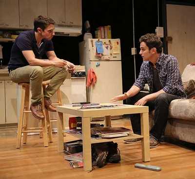 It takes a while, but Lipez and her director, Thomas Kail, manage to concoct a fascinating study of three intricate and toxic personalities at the crucial crossroads of life and technology. It's 2007, and Toby (Keith Nobbs), Joe (Matt Dellapina), and Heidi (Aubrey Dollar) are former college buddies who've spent the last few years since graduation collaborating on a social network called Joinme2u.com. Alas, because of another little site that launched around the same time as theirs, called Facebook (though use of that word is strictly verboten in the apartment/office the trio shares), they've never found the success, money, or even satisfaction they once seemed guaranteed. This has led Toby and Joe to take side jobs as tutors to well-off families (in no small part to fill a deeper well of funds for their site), and Heidi to make ends meet editing college admissions essays. The irony, though, is that these people who are attempting to establish their careers by bringing (and keeping) people together to each other are completely unable to keep their own social circles in check. Toby has been not so secretly in love with Joe for ages; Heidi has been fantasizing for the last month about the Asian man named Kwan whose essay she tweaked; and Joe has run afoul of one of his most prominent clients, the especially spoiled 17-year-old Milo (Chris Perfetti), who's now working with Toby and apparently as unable to keep his mouth or his ears shut as he is his brain open. It's just before intermission that the tension hits critical mass, with Joe and Toby bonding a little too securely over their shared frustrations at Milo and Heidi, and Joe succumbing to a dangerous sense of obligation that promises to give Toby exactly what he's long wanted most. Dellapina's easygoing affability, bearing just a few darkly unpredictable edges, blends beautifully with Nobbs's nervous, oddly innocent neuroticism to create what is, within this world's reality, a thoroughly believable, if violently symbiotic, partnership. Once the explosives are laid, Lipez can spend most of the second act exploring how each of the characters reacts to their ignition. As long as she focuses on the complexities between the group's work and the way they react with each other, the play is frequently taut and thoroughly involving, stripping everyone of the illusions they've erected to protect their innermost selves in a world that's demanding ever more public engagement. Unfortunately, Lipez spends far too much time building too narrow a foundation to support everything she attempts to construct. The first three-quarters or so of Act I are tired and tedious, consumed with minutiae that convey no energy or invention. Perhaps the nuts-and-bolts discussions of the website's mechanics and the men's tutoring gig are vital, but as rendered here they barely qualify as dramatic. And the border to the legitimately unbearable is crossed when the characters start elucidating at unthinkable length on exactly how Heidi's non-romance with Kwan (Louis Ozawa Changchien) functions. The Tutors reaches no lower point, but during that chunk of the story it struggles to rise much higher. Changchien is neither mysterious nor appealing enough to elevate the schematic Kwan (in either real or imagined form), and so even at his most winningwhen Kwan and Heidi honestly connect for the first timehe feels shoehorned into the action. Dollar invests Heidi with an alluring and natural quirkiness that provides a supple contrast for the men's lower-key attitudes, but it's not sufficient to link dots that Lipez didn't bother to provide. And though Perfetti injects Milo with a palpable neediness that burns through his façade of rickety swagger, the character is just too unlikable to register as more than a device. But Toby, Joe, Nobbs, and Dellapina make an unbeatable combination, and keep you hooked during the moments where everything else doesn't quite hang together. They establish a charming intimacy together that's reflected in everything from Kail's tight direction to Rachel Hauck's precisely sloppy apartment set design, and really reinforces the links that men form between each other when faced with unusual and trying circumstances. At each step along the way, as you watch them trying to hold together something that's all but visibly desperate to fall apart, you sense the importance that unites them: Each needs to need the other, and to be needed by him. Admittedly, not quite in the same way. But Toby and Joe discover (in several ways, most of them hard) the truthfulness of the old cliché that the devil is in the details. Both they and The Tutors are never better than when they mine those details for all they're worth.