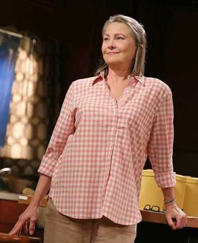 Better yet, none of the four women in Treem's play, which has been directed with soft strength by Pam MacKinnon, lets herself get mired in ennui of any sort. Each of them has a goal, a set of talents, and a drive that will get them where they're going. That they're all constrained by various obstacles, of either the external environmental or the male variety, is, perhaps not surprisingly, neither here nor there. Even when these women are at the mercy of others, they're still very much in control. This is a crucial feature for the year (1972), when the Women's Lib movement is still working to catch permanent hold in people's hearts and minds, and the location (an island in Puget Sound, off the coast of Seattle), which is far enough removed from the big city to demand at least a modicum of individuality and self-sufficiency. Those are certainly part of what's on offer from Agnes (Cherry Jones), the fiftysomething matron who runs a bed and breakfast on the island. (The cozy cabin-home set is by Scott Pask, and it's warmly lit by Russell H. Champa.) Of course, Agnes offers something else, too. She and her teenage daughter, Penny (Morgan Saylor), run a safe house for abused women out of the back room of the B&B, offering beaten, and frequently pregnant, women a place to stay while they pull themselves together again. Their latest "guest" is Mary Anne (Zoe Kazan), who's in her mid 20s and sporting a brutal black eye she earned during an encounter with her drunken and disorderly husband.