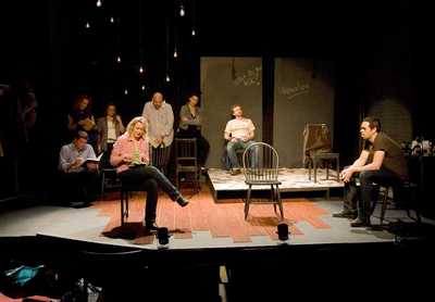 Mr. Shepard, a 21-year-old gay college student, was savagely beaten and left to die, barefoot and lashed to a fence in his hometown of Laramie, Wyoming. The story made national and international headlines that resonate to this day, as hate crimes against gay men, lesbians, and transgender individuals continue to plague the nation and the world. The FBI report of hate crimes identified over 1,100 such cases in 2012, the most recent year for which data are available. This represents officially-investigated cases. How many go unreported is anyone's guess. Statistics and true-life stories do not always make for a great theatrical experience, however. What makes The Laramie Project particularly effective stems from the way it was created by playwright and director Moisés Kaufman and members of the Tectonic Theater Project. The group worked collectively, going to Laramie shortly after the murder, conducting hundreds of interviews, and combining them with material culled from published news reports to put together the script. It is a rare docudrama that cleaves so closely to the facts while maintaining dramatic and artistic integrity. The Laramie Project succeeds on all counts. As a theatrical work, the play is ideal for a company like the Seeing Place Theater, which is in its fifth year of productions that are performed in the intimate, functional space of the ATA's Sargent Theater in Hells Kitchen. The company's founders, Erin Cronican and Brandon Walker, operating on a shoestring budget, still serve in every capacity necessary to keep everything moving forward. With The Laramie Project, they are the production's designers, co-directors, and actors in the ensemble. The Laramie Project, despite its running time of over two-and-a-half hours with two intermissions, is by design a minimalist work, dependent on its actors to portray dozens of real-life characters and their authentic voices. The power is in the story and in the telling. All you need are what The Seeing Place Theater has provideda few chairs, a pair of chalkboards, and a dedicated troupe fully committed to the enterprise. In addition to Ms. Cronican and Mr. Walker, the cast includes a talented mix of Equity and non-Equity performers, each of whom is called on to switch characters with just a change in voice or by snatching up an article of clothing hanging on an onstage rack. They are Logan Keeler, Kathryn Neville Browne, John D'Arcangelo, Elle Emerson, Jonathan Miles, Christina M Pastor, and Christine Doidge. Last year, I was privileged to attend a presentation on the impact of The Laramie Project on young performers and audiences, a presentation that included Matthew Shepard's mother, Judy. She and Matthew's father Dennis head up a foundation in their son's name aimed at combatting homophobia. What struck me was not so much Judy Shepard's down-to-earth composure, but the reaction of many of those in the audience who participated in the Q&A session at the end. This was a group of teachers, all in same age range as Matthew, and nearly all of them wept as they spoke, citing the significance of Matthew's story and the play in their livesboth personally and as educators. There are only two categories of people who should see The Laramie Project: those who have never seen it before, and those who have.