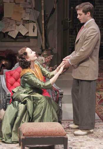 The play's title says it all about how Cornell was perceived by critics and audiences during her five-decade career. Splashing into the New York scene in the 1920s, she was an early pioneer of articulate yet affected emotionalism that depicted not reality, but theatrical reality: a sense of life, the universe, and everything that could split the bricks at the back wall of the theater, but was unlikely to be mistaken for the humanity outside. With her husband-director-producer Guthrie McClintic, she produced and appeared in dozens of plays on Broadway and elsewhere that perpetuated this style well past its sell-by date. In 1948, when Gurney's play is set, Cornell was already facing impossible competition from the Method-devoted Marlon Brando (who's recently opened in A Streetcar Named Desire) and the forward-thinking Tennessee Williams, whose daring dramas made Cornell's beloved repertoire of Shakespeare, Shaw, and The Barretts of Wimpole Street look mighty dusty indeed. Her project at that point, for example, was a revival of Antony and Cleopatra, which New York Times critic Brooks Atkinson described as "on the formal side and not without pedantry." Those words are eerily appropriate for The Grand Manner itself, which attempts to fuse Cornell's old-world know-how with Williams' unique brand of "dream play" adventurousness, and only partly succeeds. Gurney did indeed visit Cornell backstage at the Martin Beck during Antony and Cleopatra, just as his stand-in here (named Pete, and played by Bobby Steggert) does, but he only spoke to her for a few minutes about their shared Buffalo upbringing, and left with her autograph and little fuss. But this wasn't exciting enough for Pete, who becomes determined to weave a more wrenching tale from these wispy threads. In Pete's "corrected" version, Cornell (Kate Burton) is pure neuroticism, consumed by the belief that she and her production aren't good enough, and relying on both her "great and good friend" Gert Macy (Brenda Wehle) and her husband Guthrie (Boyd Gaines) to help her survive the run and a rapidly changing world. There's a lot more sex, too, with Pete hot for a girl who's waiting for him at a youth "watering hole," Guthrie hot for Pete, and Cornell and Gertrude hot for each other - relationships that, back then we're told, were only allowed to flourish in the eternally permissive theatre. Pete's fantasy is unquestionably more elaborate. But by reducing Cornell to a bundle of contemporary nerves, Gurney diminishes the light of the "luminous" star he's trying to celebrate. This may make Cornell more psychologically real (and vulnerable) to us today, but it offers no glimpse of what codified her greatness at the time. That's the real story screaming to be told, and Gurney ignores it almost entirely in favor of a shallower and simpler slice of apparently a too-vanilla life. Film and TV can bring down to earth, but theatre must elevate to make its mark - here, it doesn't. That's Lamos's most significant misstep, but it's a biggie - the production's alternating leaping and lurching through the story of how Pete met Kit are more distracting than damaging. But in this staging, you never understand the overarching point: John Arnone's set suggests a clash of temporal cultures, Ann Hould-Ward's deceptively straightforward costumes the warring of appearance and actuality. Such themes should suffuse everything else, as well, but typically feel far more ornamental than elemental. You don't get a clearer perspective from the two central cast members. Steggert is delightful to watch, and cuts a sunnily energetic attitude during the show, but conveys no weight whatsoever - even of the made-up kind so common to 18-year-old boys who want to prove they know more than every adult in the room. It's a difficult role - more symbolic of an evolving America than representing a person worth knowing - and not one that caters to Steggert's chief strength of embracing confliction head on (as he demonstrated last season in the Off-Broadway musical Yank!). Burton is only slightly more advanced: Her urban-Everywoman air leads to the sort of downplaying that can make her a magnetic fixture of some roles, but probably shouldn't be anywhere near any play with the word "grand" in the title. There's nothing grand about her, which is partially the point - the Cornell we knew wasn't just a creature of the theatre, but a creation of it - but doesn't sell the central premise of a woman who etched her every appearance onto your memory. She comes across as an eager aunt wanting to tell you of the fun she had on her latest singles cruise, not a personality too expansive for anything but the stage to contain. Gaines, on the other hand, communicates exactly that quality in the fiery, foul-mouthed McClintic, sweeping with his every step and threatening to crumple the Newhouse in his hand whenever rage or disappointment overtake him. He feels like a true man of the theatre, in the classical - almost stereotypical - sense. (Any chance we might get a play with him as, say, Edwin Booth?) Wehle presents an unflagging picture of devotion, and she makes Gert both stern and lovable as the keeper to Cornell's gate, doing her utmost to guarantee the star will only be remembered the way Gert wants her to be. Eventually, however, even the staunchest caretakers must step aside and let time, history, and luck run their courses. The three seldom work to impenetrable advantage here, ensuring that you forever view this as a lightweight rumination rather than a soul-filled tribute to a now-dead artistry. That's enough for the play to succeed as entertainment, but hardly as a profound examination of what makes stars different from the galaxy surrounding them. For that, you'd need at least a telescope. Good intentions aside, The Grand Manner isn't much more than a magnifying glass.