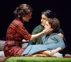 Napoli, Brooklyn, a co-production of the Roundabout and the Long Wharf Theatre, takes place in 1960, at a time when this country was on the cusp of emerging rights movements on behalf of women, African Americans, and gays. The play makes room at the table for all of these, although the story itself borrows its episodic form from one of those immigrant-in-America works from an earlier age, like I Remember Mama or A Tree Grows In Brooklyn. You've met the play's characters in other guises before. At center are the members of the Italian Muscolino family, headed up by an overbearing and abusive father, Nic (Michael Rispoli), and his loyal wife Luda (Alyssa Bresnahan). Their three daughters, each of whom also fulfills a stock role, are Tina (Lilli Kay), a factory worker who has given up a life of her own in order to help support the family; Vita (Elise Kibler), the only one who stands up to their father and who pays a heavy price for doing so; and their teenaged sister Francesca (Jordyn DiNatale), who is a lesbian, though, of course, not out to her family. Rounding out the cast of characters are three others who also serve as representative types. There is the kind-hearted Irish butcher Albert Duffy (Erik Lochtefeld), who has long carried a torch for Luda; Duffy's daughter Connie (Juliet Brett), who is Francesca's girlfriend (the pair are planning to run away together); and Celia Jones (Shirine Babb), an African American co-worker of Tina, who becomes her one true friend. The play unfolds in short scenes, each of which is a miniature character study. Things open on an intriguingly quirky note as we watch Luda quartering an onion, sniffing the pieces, and talking to it in Italian. It seems she is angry with God, so she will only talk to Him through her self-made saint, the onion. We also have early scenes with the three daughters, showing us their sisterly affection while introducing various plot points. We learn, for example, that only Tina and Francesca are currently living at home; Vita has been sent to live in a convent, mostly to protect her from her violent father. Separate scenes pair Tina and Celia in the factory, where their friendship starts to develop; Francesca and Connie fumblingly declaring their love for one another and hatching a plan to sneak aboard a ship and stow away to France; Luda and her erstwhile suitor, the butcher Mr. Duffy, discussing her meat purchases in his shop; and interactions between the family members and the foul-tempered Nic Muscolino. All of these take place on a single set, designed by Eugene Lee, a tenement apartment dominated by a large crucifix hanging from the ceiling on one side, and a stained glass church window on the other, with the corners of the set being used as needed to show the butcher shop, Vita's convent room, and the playground where Francesca and Connie secretly meet. Things move slowly for a long time, with each short scene revealing a little more about the characters, layer by layer like Luda's ubiquitous onions. Then, suddenly, at the end of Act I, there is a massive external explosion (based on an actual event that occurred at the time of the play; you might wish to join the rest of the audience members who are looking it up on their phones during the intermission). By the start of Act II, however, even this nerve-rattling dose of reality is subsumed into the symbolism that is a hallmark of the play, marking a break between the Old World that Nic and Luda and Mr. Duffy left behind, and the New World of the younger generation, who are becoming more adept at finding their way forward as Americans. Meghan Kennedy, the playwright, clearly has constructed Napoli, Brooklyn as a means of commenting on the immigrant experience at the onset of a period of social upheaval in the U. S. that would itself explode in the next decade. The cast members, under Gordon Edelstein's direction, make the most of their roles and frequently manage to breathe authentic life into their characters. Truly, there are emotionally gripping moments powerful enough to make you want to boo the villainous father and cheer the women who are the true keepers of the flame. For some, this will be enough, but anyone looking for complex character development and a compelling plot are likely to be left feeling unsatisfied beyond the ability of a proffered plate of fried onions to fulfill.