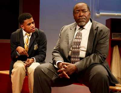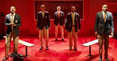 McCraney's almost-tin ear this time around is rather startling given the maestro-like command of theatrical language he's demonstrated in the past. In his previous major New York outings, The Brother/Sister Plays and Wig Out!, he harnessed the rhythms and melodies of juicy times and places, and their inhabitants, to unlock a lyricism both piercingly precise and enveloping in its universality. He didn't just depict these communitieshe made you a part of them. So for this venture, set in a prestigious religious boarding school for African-American boys, there's every reason to anticipate McCraney would work the same magic. Such a closed system, in which the fiery passions of late adolescence are constantly abutting the dying embers of adulthood, even as one group is slowly transforming into the other, would be the perfect proving ground for McCraney to unleash the ebullient strains of the young on the conservative tones of the oldregardless of the details of the story he ended up telling. What actually emerges from that story, about five boys in the school's esteemed choral group, is less compelling and more muddled. McCraney's central question is a sufficiently heavy one, however: about expectations, and the challenges of meeting them in spite of your worse nature. Pharus (Jeremy Pope) is barely closeted, but dreams of leading the Charles R. Drew Prep School's renowned choir and becoming a storied "Drew man" of yore. He rooms with the handsome and athletic A.J. (Grantham Coleman), on whom he harbors more than a mild crush. Bobby (Wallace Smith) is fighting against a tragic home life while under the watchful, disapproving gaze of his headmaster uncle (Chuck Cooper). Junior (Nicholas L. Ashe) is Bobby's friend and hanger-on; David (Kyle Beltran) is set on becoming a priest. But any time any combination of these forces engages in a battle, no one seems to be armed with anything heavier than spitballs. Pharus is depicted, from his opening seconds crooning the school's cherished song, as being so comfortable with himself that it's difficult to accept him as the emotional victim the script frequently requires. Bobby's chief trait is flying off into a fiery rage whenever anyone mentions his mother, but aside from serving as Pharus's hyper-masculine, traditionalist foil, he doesn't do a whole lot else. A.J.'s resplendent saintliness is omnipresent and never developed, explored, or challenged. David's quiet faith is largely ignored until it's needed to nudge a particular plot point; and Junior's unformed character is ignored even when he reaches that point. So scattered is everything that you're rarely sure McCraney is aware of what he's trying to say or how he's trying to say it. That no one exhibits any poetic grace is perhaps understandable; high-schoolers are rarely as deep as they think they are, after all. But a dose of it might have helped give life to the mundane scenes that choke the work in its endless middle sections. Or better justify the use of hymns and other songs that appear throughout: They relate, usually directly, to what's unfolding and cast attractive echoes that underscore the complex role of religion in these people's lives, but too often they feel like crutches intended to promote a musicality the writing cannot otherwise provide on its own. Director Trip Cullman does not provide much additional help; he's provided a thoroughly lubricated staging on David Zinn's red-box set (which Peter Kaczorowski has adequately lit) that doesn't give many of the scenes the time they need to breathe and register as more than staccato ornamentation. This mindset has spread to the actors, too, who deliver big effects without the underpinnings of pain that ought to define each person onstage. Beltran is saddled with an eye-rolling role, but he and Ashe are the only two who project the proper on-the-edge naïveté these teenagers need for everything to really make sense.