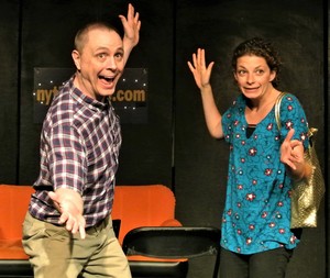 From the opening in which we learn Harcum himself will be playing theatre critic Denton, with co-star Marisol Rosa-Shapiro playing most of the other characters, we realize we're in for something between a memory play and a farcical biography. The show focuses on how Denton went from working for one of the world's biggest hotel chains in DC to becoming an essential part of the indie theatre scene in New York City. We learn how he first became obsessed with plays and how this love turned into a need to create the iconic New York Theatre Experience, which was one of the most important channels in spreading the word about Off-Off-Broadway theatre and particularly the Fringe Festival. The playwright taking on the lead character makes for some hilarious moments when Harcum as Denton talks about Harcum, often to give him praise or commend his previous work. A tongue in cheek touch that had audiences roaring with laughter. And the audience plays an important part in the show, rather than just being passive, they're invited to call out names of the websites created by Denton, catch snacks being thrown from the stage, and at one point they are asked by Harcum as Denton about shows in which they were involved that were reviewed by Denton or a critic in the team he assembled. Certainly theatre makers and indie artists were compelled by the content of the show, and arrived to show their support and learn more about Denton, but there is also a meta element that makes the play feel like a breathing organism. Those unfamiliar with Denton, his work or even the indie theatre scene should also find enough pleasure in the play. If nothing else, it's a lovesong to theatre, as we see Denton talk about how his father's love of Our Town set him on the path that would determine how he'd spend his adult life. Listening to Denton talk about criticism and the importance of reviewers engaging with the work they're seeing felt inspiring, and hearing stories told by his mother Rochelle (Rosa-Shapiro's most delightful character) isn't only quite funny, but also moving because it speaks volumes of how Denton was able to bring his family into his life's work. With Martin Denton, Martin Denton Harcum doesn't just celebrate the legacy of a digital critic pioneer, but also pays tribute to how a man's passion shaped those around him.