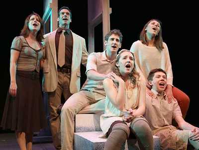 But despite the fine cast covering both genders of every age (Joe Paparella, Katy Blake, Ryan Jesse, Susanna Rizzo, Ethan Haberfield, Maya Brettell), creative direction (Ryan Pifher), and attractive, light choreography (Maureen Glennon), Coming of Age is almost as much of an endurance test as K-12 and college combined. Provan's attempts to fuse Stephen Sondheim creativity with (Songs for a New World<–era) Jason Robert Brown narrative intricacy fizzle because of a lack of focus: Too often, the show seems more about checking off boxes (Frustrated Jewish Girl, Wife Who Wants More, Men Who Think They Missed the Boat, Confused Transsexual, etc.) than plumbing genuine, relatable emotions in genuinely theatrical ways. In addition, Provan tends to substitute big concepts for actual intimacy, and his frequent digressions into unusual or arcane personalities or situations only make any drama even more remote. (Is it absolutely necessary to have forays into pre-statehood Nebraska, monarchical Britain, imperial Rome, and a pre-history mammoth hunt, all in the first act?) The moments that work are usually forced to do so by the cast: Blake has a natural and mature plaintive quality that leads real gravity to what she sings as the resident middle-age woman; Jesse is incredibly likable, and his gift for simultaneously playing sexually confident and socially awkward adds nice complexities to his archetypal role of Young Man at a Crossroads; and Brettell packs a veteran's voice and uncluttered optimism into the part of the Girl, who's never quite as disconnected from her surroundings as she leads others to believe. Still, it's tough for the actors to get much traction, even during their best moments. In composing 21 songs for the show, Provan hasn't knocked out a single star-turn, and most of what he has written is hyperextended and rambling, rarely settling for depth when breadth will do. The separate "wet dream" and "losing your virginity at the brothel" numbers, for example (which are unwisely presented back to back), don't end until they've explored every thought of all three men. (Running nearly two and a half hours, the show feels at least 30 minutesand more likely 45 minutestoo long.) And though Provan is not untalented at teasing out melody, especially when the mood is jauntier, his finer themes too often get diluted by the excess, causing his songs to all drone similarly after a while, something that's not true of the more accomplished entries in this genre. Those showsStarting Here, Starting Now and Closer Than Ever, both by Richard Maltby, Jr. and David Shire, being the most obvious and useful comparisonsare more closely tied in with the world in which we live and the way we live in it, making them far more personal, moving, and inventive than anything you'll find here. Through his subjects of choice and their execution, so often more concerned with variety than vitality, Provan has created a musical that forgoes its universal potential, each of the experiences it documents feeling, with each minute, like something that never could and never would happen to us. Sadly, Coming of Age isn't quite as grown up as it thinks it is.