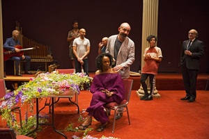 Gold, who certainly has earned a reputation as an outstanding and clear-eyed director (A Doll's House, Part 2, Fun Home, and many other fine productions), has another side to his personality that periodically shows up. It takes the form of the kid who loves taking things apart but is rather at a loss as to how to put them back together again. We've seen this with his highly stylized, stripped-down versions of modern classics like John Osborne's Look Back In Anger and Tennessee Williams's The Glass Menagerie. There's a sort of "let's try this and see what happens" vibe to these efforts, as if we were watching the creative process at work (though these kinds of things are usually better dealt with during the early phase of rehearsals). With Hamlet, however, the gimmicky physical production seems to have gotten most of the attention, while Shakespeare's play gets lost in the shuffle, popping through only occasionally, like sunshine on a cloudy day. If you like your Shakespeare to be performed by actors who are expertly conversant with the Bard's poetic cadences, it might well be worth your while just to catch that ray of sunshine, Ritchie Coster as Claudius, King of Denmark and Hamlet's murderous uncle. The actor dominates the stage whenever he's given the opportunity to do so, imparting as good a rendition of Claudius as I can recall seeing over multitudes of Hamlets. His King is a wily, self-serving, and suspicious ruler, quite prepared to sacrifice everyone and everything to hang on to what he has stolen. An interesting touch has Coster also playing the ghost of Hamlet's father, a part he performs with equal skill. Of the rest of the cast, Charlayne Woodard as Queen Gertrude and Anatol Yusef as Laertes also do well with making Shakespeare's 16th century language accessible to modern audiences. Of course, neither Claudius, nor Gertrude, nor Laertes is the central character. That would be Hamlet himself, played here by Oscar Isaac, better known for his science fiction/fantasy movie performances in such fare as "Star Wars: The Force Awakens" and "X-Men: Apocalypse." Isaac deserves a lot of credit for taking on one of the richest and most complex roles in the Shakespeare canon. As literature's famous "melancholy Dane," Isaac's line deliveries are rather more contemporary in style, but even so, he is able to hit those lyrical high notes (the "Get thee to nunnery scene" is quite potent, as are his interactions with the visiting Players). He also gives a bravely physical performance, jumping onto the furniture and engaging with abandon in the fight and dueling scenes. As you may have heard, he also runs around in his (modest) underwear about half the time. Apparently, this is Gold's interpretation of Ophelia's description of Hamlet as appearing before her "with his doublet all unbraced." Performing the role of Ophelia, Gayle Rankin comes off as something of a cross between a tough girl punk/goth combo and her daddy's obedient child, a confusing presentation of the character, but at least that psychological mix could help explain her descent into madness and suicide. Assuredly, there is plenty of room for tinkering within a production of any Shakespeare play, provided the result does something to enlighten or clarify or offer up a new interpretation. But here, it seems as though an assortment of odds and ends were tossed in, helter-skelter. What do we make of the stripped-down set design that consists of a folding table (that often functions as a flower-strewn bier) and a set of four chairs? And what about the costumes which, with the exception of the regal gown worn by Ms. Woodard's Queen Gertrude, mostly look as though they might have been picked from a consignment bin of mismatched, cast-off leisurewear from a couple of decades ago. And, oh, let's not forget the bathroom with its often-in-use toilet; at one point, we find Polonius (Peter Friedman) sitting on the "throne" with his pants pulled down to his ankles; at another, we discover Ophelia on her knees, vomiting into it. How did we get from Elsinore Castle to all this? And why? The toilet stuff (when in doubt, interject another flushing sound to break up the "boring" speeches) and other moments throughout the production effectively set off laughter among the audience. In fact, Gold has gone out of his way to trip up Shakespeare's great tragedy in order to milk every potentially comic moment through the use of exaggerated design or line readings. Isaac's Hamlet, for instance, is not only cynical; he is a master of the put-down zinger, especially in his interplay with Polonius. The insults are Shakespeare's of course, but the delivery is all Gold. Almost by way of recompense, Mr. Friedman later gets his turn as "top banana" when he switches instantaneously from the role of the dead Polonius to that of the chief gravedigger. Just before that happens, though, there is a sequence of dizzying, quite bizarre actions going on related to Ophelia's madness and death. No spoilers, but it involves a lot of dirt and a garden hose. We do need to recognize and salute the contributions of on-stage cellist Ernst Reuseger, who performs the jazz riffs and Philip Glass-like music that underscore the goings-on. But everything else during the three hour, forty-five minute running time bears the mark of Sam Gold up to his neck in his most tinkering, deconstructive mode. And it pretty much engulfs everything, so that we are consistently drawn toward the odd array and constant shifting of smoke and mirrors instead of to Shakespeare's words. All in all, it is difficult to fathom what Gold had in mind. If he's shooting for an absurdist version of Hamlet, Tom Stoppard already did that quite successfully with Rosencrantz and Guildenstern Are Dead. Otherwise, there's precious little to be found here that contributes to our understanding of the play; every gimmick in use could be thrown at any production of any play, with the same nonsensical effect. It most certainly 