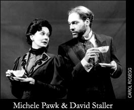 I am easily bored by characters who are either all good or all bad. What makes the machinations of this plot so enjoyable to watch is that each of the four characters is drawn with facets that make the audience's allegiance shift often. Edith's husband, played in an ultimately charming way by David Staller, at first seems like the stereotypical dull husband, but we learn things about his past which make his drinking, a kind of self-medication, pitiable. Edith and Anna have a friendship which strains the bounds of a typical Victorian employer-employee relationship, and it brings out in them many nuances of generosity and selfishness. The young object of Anna's affection, Charles, could have been drawn merely as a cad, a plot device, but instead, he grows through the play and develops the ability to be hurt in many ways.