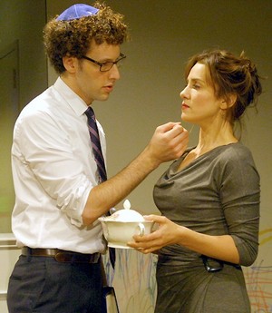 What it does do, almost as well as The Temperamentals did, is cast the struggle for both internal and external equality in stark terms that identify the real conflict at play. Phyllis (Tricia Paoluccio) is caught between two men who are challenging her perceptions of Orthodox Judaism. The first is her husband, Jay (Jonathan Hammond), a psychologist specializing in Same Sex Attraction Disorder, who dedicates his practice to helping Jewish men overcome homosexual tendencies. The second is Stuart (Noah Weisberg), a medical doctor who became Orthodox six months ago, is still finding his ideal place (and place of worship) on the UWS, and who, oh yes, happens to be gay. Phyllis meets Stuart when he calls her to provide the food for a party he claims he's having, though she's been out of the Orthodox catering business for a while now because of the ever-increasing needs of her autistic and rambunctious seven-year-old son, Ethan. But the two quickly become fast friends, indulging in art, museums, and various other interests Jay doesn't have time foreven though Phyllis makes no secret of how distasteful she finds Stuart's sexual orientation. A note here for those who prefer to maintain surprise: There's no way to further discuss the play without divulging crucial aspects of the plot, so consider this your official warning and skip the rest of this paragraph. Phyllis invites Stuart to Shabbos dinner one Friday evening ostensibly to welcome him, but really to introduce him to Jay and hopefully (literally) set him straightbut learns instead that not only do the two already know each other, they had an affair while Jay was treating Stuart around the time of his conversion. This sets all three on a harrowing journey of discovery, with Jay and Stuart moving in together, only to be divided by the faith Stuart truly adores but that Jay takes for granted, and Phyllis trapped without either the lifelong lover or newfound friend she deeply believes are acting against the only system of living she's ever known.