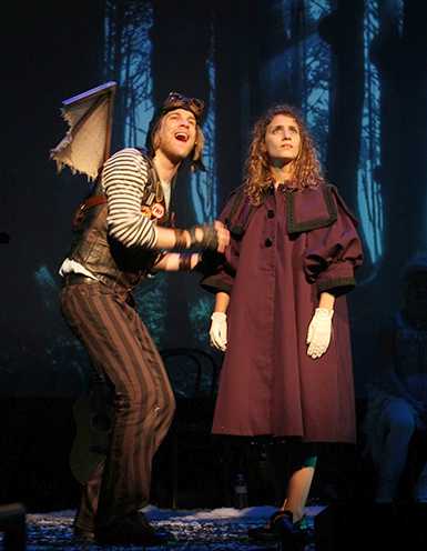 Even if you're not the world's biggest fan of Frozen (as I'm not), there's a clarity and economy to Jennifer Lee's screenplay and Robert and Kristen Anderson-Lopez's score that Kristen Brandt (book and lyrics), Haddon Kime (music and lyrics), and Rick Lombardo (book, lyrics, music, direction and choreography)'s work cannot match. This trio is unquestionably more faithful in translating Andersen's tale of enduring friendship in the frigid wastes, but that does not always prove to be a goodor an entertainingthing. The Snow Queen is at its best when it's focusing most intently on Gerda (Eryn Murman) and Kai (John Michael Presney), a pair of youths who are separated when Kai falls under the thrall of the, ahem, bewitching title character (played with glam brio by Jane Pfitsch) and becomes hypnotized to the task of counting snowflakes and answering unanswerable questions about eternity. There's something undeniably powerful about Gerda setting out to find and rescue him, applying her unique style of innocent, unconditional love to assist her across a wide series of adventures. Those adventures, however, are a problem. Though Andersen integrated scenes of flowers, anthropomorphic birds, and robbers into his tale, he did so with an air of breezy whimsy that made them feel necessary components of their world. But here the action stops dead so the flowers can cavort, the birds (led by an aging crow, played with bright gumption by a scenery-gnawing Jason Hite) can wing on toward an exciting first-act-finale production number, and both the robber girl (Lauren Cipoletti) and her mother (Lee Ann Payne) can have their own endless songs. By the time a princess (Cipoletti again), reindeer (Reggie D. White), and the so-called Wise Woman of the North (Payne) get into the act, the gaping majority of the more than two dozen characters have been given a stunning amount of front-and-center time. Toss in the not-insignificant fact that neither Gerda nor Kai get many robust character songs, together or apart, and thus can vanish into the background for minutes at a stretch, and you have a narrative in which it's all but impossible to know whom you should follow or care about, and why. It doesn't help that the show is also incredibly hard-sell, with a too-loud rock-infused score of nearly 30 songs (many of which are accompanied by the instrument-playing company in their off moments) that doesn't easily mesh with the storytelling style, and found-object costumes (by Francis Nelson McSherry) that look like they're striving to be more clever than evocative. (The lights and scene-setting projections, by David Lee Cuthbert, are considerably more on point and successful.) Over an hour, perhaps an hour and a half, this all might seem charming, but at a full two and a half hours, it's oppressiveespecially for a piece that's obviously courting a family audience. The best performances come from Murman, Pfitsch, and White, because they don't push harder than they need to, but even their work gets loss among the myriad drifts that choke this otherwise promising musical. When The Snow Queen hits its marks, particularly in its final song, which contrasts the fantasy and the reality of "happily ever after," it does have an endearing quality that can't be ignored. Most of the rest of the time, however, it leaves you shivering.