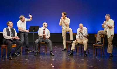 Not that it ever has. Like many NYMF projects, it's been long-aborning, appearing here and there over the last couple of decades but, for some reason, never quite finding its feet. But if this production, which has been directed by Igor Goldin and features a stellar cast, is any indication, it won't be stepping into the shadows anytime soon. Though an adaptation of Frank D. Gilroy's 1985 film of the same name, its energy and polish make it stand out as a truly distinctive work both of the NYMF and general-market varieties. What makes it workwell, one of the thingsis that it never loses focus on the people at its center. Each of the quintet of middle-age, dissatisfied, and mostly married men, who meet every Wednesday night for impromptu jazz performance parties, are intricately defined: the used car salesman and unofficial leader, Marty (Larry Cahn); the henpecked Jack (Kevin Pariseau); the single loser, Arthur (Nick Gaswirth); the easygoing dreamer, Gil (Michael Minarik); and the devoted Aaron (Steve Routman). So when they receive what is quite obviously the chance of their lifetimes, to play for two weeks at a Catskills resort, the actions and reactions that follow propel them into exactly the right decisive, but terrifying, new directions. They meet plenty of intriguing new people along the way, from Marshall (Doug Eskew), the professional bassist who steps in when group member Georgie bows out due to health concerns, to oily resort manager Abe Mitgang (Stephen Berger), to two lovely and searching resort employees in Donna and Lucy (Dee Roscioli and Kate Fahrner), and a washed-up TV star looking to jumpstart her big comeback (Donna Vivino). And each of the performers plays these roles with sweeping comic know-how, but also emotional aplomb that roots them and their actions in reality. But it's the guys in the band that matter most, and The Gig as a whole is structured to ensure that they all learn something as contact with these "newcomers" and the evolving ideas around them becomes unavoidable. And that's where the musical really comes into its own, exploring through song and surprisingly sensitive scenes why this outing is so important even though, in the grand scheme of things, it's probably really not. And by the end, when events have made their deepest impacts on everyone, the men finally turn their eyes inward to achieve the growthand catharsisthat's as important for us as it is to them. Not a false note is struck in their performances, and the actors' interplay is so strong that to dwell on any one might risk diminishing the others, which would be truly unfair. But as an anchoring presence, Cahn is especially superb, and finds an ingratiating manner and delivery that bring you as much into the guys' fantasy just as completely as they are. And he guides the narrative with no less a sure hand than Goldin, who's put together a thoroughly fluid and stripped-down-but-sumptuous rendering of the men's story. (There are no sets to speak of, and all the instruments are mimedyou miss neither.) With a stunning score (impeccably orchestrated by Michael Gibson) that incorporates what ought to become new jazz standards with carefully considered numbers investigating the characters' inner beings, and includes one of the very best opening numbers ever to be heard at NYMF (and which you won't be able to get out of your head for days, assuming you even want to), as music or theatre The Gig is about as flawless as we get these days. Assuming Cohen is still working on the show, he'd be well to make another pass at the second act to things from slowly but steadily losing steam, as they currently do, and rethinking the final number, which is the only time the whole evening that feelings and notes do not seem to be in absolute sync. That, however, can't derail the rest of this wonderful show any more than Marty, Jack, Aaron, Gil, and Arthur's own fanciful hopes and aspirations can stifle their playing. Yes, The Gig is more than successful at reminding us of how crucial it is to chase what matters most to us, regardless of the obstacles put in our way. But, as with the best shows in the canon, you'll be too busy having fun to absorb the extra layers of meaning until after you're floated out of the theater, with cool folks still occupying your mind and hot jazz still ringing in your ears.