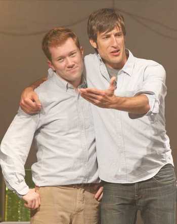 But Brad Alexander and Adam Mathias's showwhich won both the Richard Rodgers and Jerry Bock Awards, and was produced at the Berkshires' Barrington Stage Company in 2008is not merely a heartless musical travelogue. It captures the uniquely optimistic American spirit that typifies both its great places and the people who live in and visit them. The constant theme is love, of course, but not always of the romantic kind: The violent caring that can exist within families; the love of possibility; the love of friends; and, in the sweeping finale, love of selfall receive their fair due in six stunningly diverse scenes. The first, from which the collection derives its name, finds the itinerant Jess (Bryce Ryness) picking up a waitress (Mamie Parris) from a roadside diner and taking her to the fabled Rock City of Tennessee that all the local barn roofs insist he experience. At the Alamo, an ailing grandfather (Ryan Hilliard) arrives to relive his own most formative romance, while inspiring a new one in his granddaughter Lauren (Sally Wilfert). Three sisters (Parris, Wilfert, and Donna Lynne Champlin) cruise Alaska's Glacier Bay to spread their father's ashes, and reform bonds they thought they'd broken long ago. Two high-school friends, Cutter and Rick (Ryness and Stanley Bahorek), cut school to spend a fateful day in Coney Island, where they learn more about themselves than they expected. A bride-to-be (Champlin) explores the mythical nature of Niagara Falls with the help of a strangely sinister tour guide (Jonathan Hammond). And Evan (Bahorek) makes a pilgrimage to Roswell, New Mexico, on the night he's convinced its fabled aliens will make their return appearance. The actors may recycle between playletsand quite effectivelybut they're all that do. Composer Alexander and librettist-lyricist Mathias give each chapter a sound and feel tightly befitting its content, and they all relate only in the spiritual freedom they express or demand. The soaring "Rock City" evokes the dust and endless potential of the country's arterial thoroughfares, while "Q Train to Coney Island" and "Niagara Fallsthe Tour" more breathlessly describe journeys more compact in nature. Evan's "We Are Not Alone" and "Here" tackle his crippling intellectual devotion with a beguiling intensity. Softer numbers, particularly in the Alamo Scene, mourn the way time erodes features both geologic and psychological. There's even a genuinely charming comedy number in "Three Fair Queens," in which the Alaska women remember their songwriting father's crowning composition. The band (led by musical director and orchestrator Justin Hatchimonji) beautifully summons up the energy necessary to sell the score's finest pop radiomeetsfolk music qualities.
