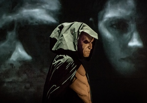 Six of the walking wounded and their self-important ("only I can heal you") VA therapist Jonathan (John Carhart) meet regularly for group sessions. This is an oddly specific sort of group. Each of the participants identifies with some third-tier action comic book character. If you are an aficionado of such lore, you may recognize their alter egos. Drawing from the X-Men world, Sybil (LaGina Hill) identifies with a six-armed sorceress named Spiral. Alison (Jolynn Carpenter) sees herself as The Dazzler, another Marvel mutant figure. More troublesome, the seemingly gentle Artie (Matt Mingle) identifies with Mr. Gone, a serial rapist in The Maxx, and the always-explosive Jim (Phillip Christian) is The Spectre, a vengeful DC Comics character. There are two others in the group who don't fit in quite the same way. One is Bob (Alex Teachey), who not only identifies with a comic book character but is unshakable in his conviction that he actually is Bob the Goon, henchman to Batman's mortal enemy The Joker. (The rest at least have a nodding acquaintance with reality). There is also a newcomer (Alicia Goranson) who refers to herself as "Langly," an identify that stems not from comic books but from the realm of anime. It may sound like a minor departure, but some of the others, especially the rigid absolutist Jim, find her presence to be disruptive and dangerous. This is some disturbing territory we are exploring here, especially when we meet each of the individuals in their full glory as they embody their fantasy personae. And they are not playing dress up; we are treading inside the minds of some seriously troubled folks. Over the course of the play, we grow to understand the connection between the characters' fantasy identifies and their actual war experiences, and we do see some progress in their ability to function in civilian life. But we also learn that their therapist is using the group as guinea pigs for an experimental treatment he hopes will lead to fame and fortune. There is, it seems, some justification to the paranoia some of the group members are feeling, especially as things start to spiral even more out of control than they already are. The playwright has a lot to say about the difficulties faced by war vets burdened with PTSD, the way we tend to ignore them when they return with their problems, the iffy service provided by the VA, and the general air of threat and paranoia that attaches to many of their lives. All of these vie for our attention through the play's many scenes, and it is very difficult to stay on top of the varying threads. The various comic book elements adds to the confusion, especially if you are not well-versed in the genre. One element that does work well is the visualization of the fantasy figures, using outstanding puppet designs by James Ortiz (2016 Obie winner for The Woodsman), costumes by Jenny O'Donnell, and projections by the playwright. Original music by Wi-Moto Nyoka, reminiscent of film scores featuring Marvel or DC Comics characters, serves as a bridge between scenes. For their part, director Lucia Bellini and the cast do their best with the knotty and sometimes dense writing that prevents the characters from coming fully to life. In the end, they seem as two-dimensional as those on the pages of the comic books they identify with.