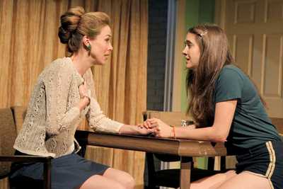The Clarkes, a family of, shall we say, substantial vertical enhancement, is in the midst of recovering from a tragedy. A longstanding friend of the family, Sister Connie, who teaches at the Catholic school the four adolescent Clarke children attend, was hit by a bus and rendered brain dead. In the aftermath, eldest daughter Isabelle comes to the (not unreasonable) conclusion that her mother, Anne, and Connie had at one time had a very different sort of relationshipone that has cast a silent pall over the Clarkes in general and Anne's relationship with Isabelle specifically. The free-thinking, progressive Isabelle, a late-blooming Flower Child who just missed the most exciting protestsit's now 1970, and she's just about graduate from high schooltells her mother, without telling her, that she understands her pain and, most of all, it's okay for her to experience it. In return, Anne tells Isabelle, again without saying a word, that she appreciates the sentiment and is suffering from a pain she hopes Isabelle will never know. The two clasp hands: Anne holding on for dear life, and Isabelle bestowing that new and freer life to the woman she's only now realizing she's never truly known. At this point, Kerrigan's gift for marshaling quiet simplicity with devastating force seems total, and her knack for carrying captivating drama without excessive dialogue or ornamental characterization refreshing. This scene is all the more impressive because it is the one and only time in The Talls that Kerrigan dares suggest any such thing. The rest of the show, for which Carolyn Cantor has provided loose-fitting direction, more closely resembles a playwriting maximization experiment. In addition to the looming possibility of lesbianism, dad John (Peter Rini) is running for Oakland comptroller; Isabelle (Shannon Esper) is preparing for college, and much to the chagrin of Anne (Christa Scott-Reed) is afraid to give her valedictory speech; older brother Christian (Michael Oberholtzer) is a baseball whiz who might be coming up on his big professional break; younger sister Catherine (Lauren Holmes) has no self-esteem, and doesn't believe she can do anything correctly; younger brother Nicholas (Timothée Chalamet) is starting to get interested in sex, and is quite probably gay; and John's campaign manager, Russell James (Gerard Canonico), spends the night, and finds a way to liberate the underage Isabelle of both her few remaining inhibitions and her virginity. Even leaving aside the more typical "coming of age" seasoningIsabelle is learning to turn her back on both her parents' politics and religion, for examplethat's a lot for an 80-minute play. All this does signify that the Clarke family, like the United States itself at that time, is poised for major shake-ups, and each tremor Kerrigan documents could well lead to earthquakes further down the line. But the only satisfying thread of story is the off-kilter "love" triangle between Anne, Isabelle, and Connie. That this is the only one that reaches even a tentative resolution is not incidental. The rest are determined to convince us that the Clarkes were built of flesh and blood and not something as base as dramatic convenience. But by the time Russell and Isabelle are running around "the morning after," trying to clean off his pants the, uh, evidence that perhaps they were doing something they shouldn't have been, every development rings hollow, as though they've all been added for effect rather than to affect; and Kerrigan generally begins ignoring issues within minutes of raising them. Except for those few minutes of mother-daughter bonding, nothing feels significant; even Dane Laffrey's gloriously kitschy living room set looks like it would have more staying power. Cantor's arid, distracted direction does not benefit or benefit from the cast; none of these actors is capable of making meals of the scraps Kerrigan has tossed them. Canonico comes the closest, finding almost the proper balance between youthful abandon and adult responsibility. But Esper conveys Isabelle as being utterly without passion, which makes her meandering between various life choices more irritating than endearing; Oberholtzer and Holmes project the basics of a tormented brother-sister pairing; and Scott-Reed and Rini succeed at sketching the boundaries of a gulf between too-thinking adults. None of these relationships has any real depth. Oddly enough, this makes Connie the most crucial and compelling character. Though we never see her, the Clarkes provide us enough information to understand that she was the lynchpin in their rapidly unraveling lives. What will happen without her as surrogate mother to the children and Anne's lifeline in times of distress ends up being the only question you want answered. So it makes sense that, only when Anne and Isabelle address it, however obliquely, does the play satisfy. In every other way, The Talls comes up short.