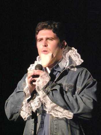 "Wait," you may be crying, "you're missing the point! Stewart just wants to have fun spinning the late-night talk show host into a William Shakespeare play we already know." True. And for a Fringe Festival project, that's as good a goal as any. But by adopting Macbeth not just as his model but also as his structure, Stewart prevents himself from delivering any real insights into one of American entertainment's most complicated figures. Depicting Leno as a self-destructive Shakespearean isn't a bad ideait's a good one that demands a more serious, or at least more thoughtful, treatment than it receives here. As it is, Stewart has gone to extravagantand questionablelengths to shoehorn Leno's story into Macbeth's framework. Is Leno (Joshua Key-Maginnis) a power-mad opportunist, as he's portrayed here (with more than a dose of cluelessness), or is he a businessman who doesn't always make the broadest-thinking choices? Was Leno's manager, Helen Kushnick (Anne Richmond), a coercive and corrosive yet breakable force like Lady Macbeth, or something more overtly hungry? Sure, Johnny Carson (Michael Lister) as King Duncan is a smart notion, but does Conan O'Brien (Seth Andrew Bridges) sufficiently track to Duncan, David Letterman (Bill Bria) to Malcom, and especially Jon Stewart (John Kurzynowski) to Macduff? And is Stewart's dialogue supposed to parody itself as it strains to conform with preconceived notions: "Is this a microphone I see before me?" Really? In spite of such desperation, things hold together acceptably enough through Leno's initial sparring with Letterman over the Tonight Show gig the first time aroundthough much of it isn't dramatized directlyand into the recent unpleasantness that found Leno replacing O'Brien on the Tonight Show, after O'Brien replaced Leno less than a year before. But after that, when Stewart scripts assaults on NBC studios (with NBC underlings hiding their faces with leather portfolios rather than the trees of Birnam Wood) and a murdered O'Brien returning to life as a deity with more healing authority than Jesus, the show becomes less a thought experiment than an exercise in tedium. Stewart doesn't help matters with his clumsy, unimaginative staging that doesn't make the most of either his text or Shakespeare's; it's static-feeling and inward-looking when it should be trying to draw us under its spell. (Laura Helmer's costumes, which combine ancient lace and frills with contemporary power suits, are clever, however.) Stewart has also coaxed iffy performances from all his actors: Bridges's O'Brien is the most sensible and restrained figure onstage, which alone tells you something is amiss. But Key-Maginnis and Richmond especially don't connect with their roles as part of a larger story, settling for external tics and funny voices (in Key-Maginnis's case) and by-the-book ball-breaking gorgon tendencies (in Richmond's). In fairness, everyone displays this flattening simplificationthey all deliver their lines like they just want to have fun. But when photocopying Macbeth and replacing the names, "fun" alone doesn't quite cut it, especially if that fun is at best intermittent. It perhaps goes without saying that the actors don't remotely look or sound anything like the people they're playing. That's not a problem, but it is that theylike Stewarthaven't found a believable way to link their characters to their Shakespearean roots. Had Stewart written a modern Shakespearean tragedy or presented the original Macbeth as a comment on the late-night TV wars, the results might been illuminating. But his halfway, half-hearted combination of those ideas in MacChin doesn't tell you anything that other sources (from newspapers and celebrity blogs to The Night Shift, in both book and telefilm form) haven't explored more fully. Leno will undoubtedly continue to fascinate and frustrate, but Stewart's own ambitions in relating the comic's story may be better served laterit's possible, perhaps even likely, that Leno's story is far from finished.