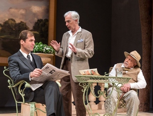 Now, the Mint is giving us the opportunity to see what it is about the play that attracted such superb artists. A Day by the Sea's three acts (!!!) unfold in the garden of the Dorset home of Laura Anson (Jill Tanner), and on a nearby beach, over the course of one day and the following morning in May, 1953. The central character is Laura's adult son, Julian (played by an actor also named Julian, but with the surname Elfer). He's a tightly-wound foreign service employee who, in the first scene of Act II, suddenly encounters a major setback in his career trajectory. How the 40-year-old Julian (Anson, not Elfer) deals with the mid-life crisis brought about by this setback is the crux of the play, but there are several subplots involving several other characters rather too many of both, some might say. Quite a bit of attention is focused on the alcoholic, acerbic Dr. Farley (Philip Goodwin), who is kept in the family's employ for reasons that are difficult to divine other than the theory that "dysfunction seeks dysfunction." Farley's primary purpose is to tend to Laura's elderly and infirm brother-in-law David (George Morfogen), but this has all the markings of one of those "physician, heal thyself!" situations. Though Farley is quite a mess, he somehow becomes the unrequited love object of Miss Mathieson (Polly McKie), governess to the two young children of the visiting Frances Farrar (Katie Firth), a woman who had been taken in by Laura Anson as a refugee child and who therefore grew up (and fell in love) with Julian who went off to school and left her with a broken heart, prompting Frances to marry a much older man and then, after he died, to wed a much younger man in an obvious if unconscious attempt to recapture the young love she felt for Julian.... As the above synopsis indicates, A Day by the Sea covers a lot of ground. The play's length and its three-act structure seem ill advised, and at least one of the 10 characters seems entirely superfluous. Most of the subplots and interrelationships between the characters are interesting in themselves, but they are not woven together very well by the playwright a flaw exacerbated in the Mint production by the flaccid direction of Austin Pendleton. In an odd misstep for someone with many years of experience as both an actor and director, Pendleton here seems to have concentrated more on blocking and stage business than helping the cast connect with the text and with each other. More than once during the course of the production, he has instructed or allowed the actors to commit a stage crime that lies somewhere within the felony range: Two actors/characters hold a very intense, highly emotional discussion while one of them seems to be completely distracted by something else for example, reading a newspaper and so makes little or no eye contact with the person to whom he's speaking. This sort of thing strikes me as so jarringly unnatural that it can only be explained by the director having gotten into his head the wrongheaded notion that everyone on stage always needs to be "doing" something, rather than sometimes simply focusing on and talking directly to one or more of the other actors when nothing more is called for. In the role of Julian Anson, Elfer has the challenge of believably playing a huge character arc that's supposed to occur in less than 24 hours' time. He does a fine job of it, but I expect his work would have been even more laudable with better directorial guidance. Goodwin offers a highly idiosyncratic portrayal of Dr. Farley that's entertaining in its way but doesn't help the audience make sense of the character; in fact, it has rather the opposite effect. Tanner and Morfogen are happily cast and very good in their roles. Sean Gormley is excellent as the fellow who comes to deliver the bad news about Julian's career, Curzon Dobell is fine as the guy who really doesn't need to be there, and Kylie McVey and Athan Sporek are cute as Frances' kids. The best performances of the lot come from McKie as Miss Mathieson and Firth as Frances, though even they could have used a couple of pointers from Pendleton. SPOILER AHEAD: Very near the end of the play, Frances, who was desperately in love with Julian in their youth, makes the difficult decision to reject his proposal to become her third husband and the father of her two young children. Didn't it occur to the actress or the director that the woman might give a sad look back at Julian just before her final exit or, conversely, that she might leave quickly and without a backward glance but with tears in her eyes, rather than calmly and composedly walking off stage left as if nothing major had happened? Whatever flaws exist in the show's direction and some details of the performances, the Mint has given A Day by the Sea a typically gorgeous, thoroughly professional production. Charles Morgan's picture-frames-within-picture-frames sets for the garden and the beach couldn't be lovelier, nor could Martha Hally's costumes and Xavier Pierce's lighting be any closer to perfect for this piece. Amy Stoller has lovingly and skillfully tended to the cast's dialects; the only actor who doesn't sound 100 percent credibly British is George Morfogen, but that's forgivable because...he's George Morfogen. Jane Shaw's sound and music provide the perfect ambience, and Robert-Charles Vallance does his usual expert wig & hair design work. Beginning with this production, The Mint is now in residence at the Beckett Theatre, Theatre Row, after many years in its previous home in a cramped space on the upper floor of a building on West 43rd Street. This is very happy news overall, but I would advise the company to raise the deck of the stage about a foot for future shows, if possible, in order to improve the sightlines.