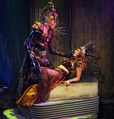 Though its title, and especially its emphatic punctuation, promise an absurd (if not absurdist) romp through the wacky world of Manhattan pest control, that's not exactly what the show delivers. At its heart, it's a story about two women pursuing freedom. Carly (Grace McLean) yearns to be released from the guilt she's felt for 25 years, ever since her mother died in a freak bedbug attack Carly is positive she could have preventedand she's pursued a career in science with the sole intent of developing the chemicals that will wipe out the insects for good. Dionne Salon, the Canadian pop singer whose performance on Johnny Carson captivated Carly the night of her mother's deathis trapped in a loveless marriage to her emasculating manager (Danny Bolero), and she wants out. Their plotlines intertwine in numerous ways over the two-hour course of the show, now involving Carly's younger brother and lab assistant, Burt (Nicholas Park), who just happens to be a die-hard Dionne Salon fan, now focusing on Cimex (Chris Hall), the human-sized, metal-singer-styled king of the bedbugs who's (apparently) created by Carly's latest mix of noxious chemicals, and who has his own sights set on world domination. It all unfolds with the dark-tinged vivacity of a 1980s pre-post-apocalyptic horror flick and, indeed, as Cimex kidnaps Carly and makes her his queen and Burt and Dionne struggle to assert themselves in the falling-apart world above, you delve deeper into a world of postmodern Gothic terror with a wry, antenna-wriggling twist.