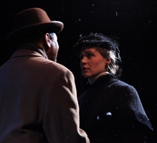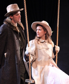 The Climbers is a play very much of its period. It is part social satire, part melodrama, and part Ibsenesque problem play. The first act opens after the funeral of George Hunter, a wealthy businessman, husband, and father of three daughters. His widow, Mrs. Florence Hunter (a very funny Margaret Catov) takes her role as grieving widow very seriously, and she is particularly concerned with such matters as the number and social prestige of the mourners, proper length of black veils, and appropriate border widths on bereavement notepaper. The funeral sandwiches scarcely have been devoured before Mrs. Hunter is hit with an even more distressing blow: her husband had lost everything in bad investments just before he died. The family is penniless, but she and her youngest daughter Clara (Becca Ballenger) immediately begin concocting plans for climbing back up to society's upper echelon. The focus of the play shifts in the second act to good-natured Blanche Hunter Sterling, the eldest Hunter daughter. Blanche (Erin Beirnard) is married to an unloving and corrupt financier (Marc LeVasseur) whose proclivities for embezzlement risk destroying the family's name completely. Edward Warden (Ian Eaton), a devoted friend of the Hunters (with especial devotion for Blanche), may be the only hope for preventing the social and economic climbers from taking a devastating fall.