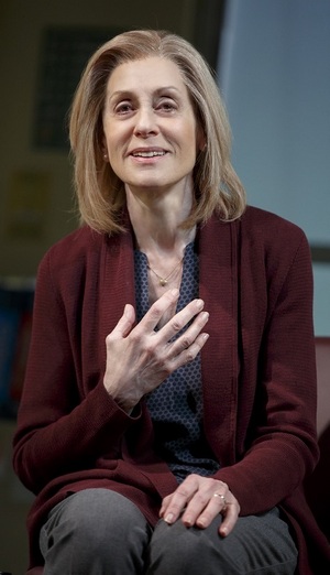 As for the details of that relationship, well... It's tough to avoid spoilers here, as the entirety of the one-hour show directly concerns the pairing in question. So I will divulge that the middle-aged woman Light plays, known only as Mrs. Johnson, is a teacher, and her paramour is the high school student for whom she's a guidance counselor. That much is admitted early on. And, not long afterward, she digs so far into the details of what they did to and with each other during their fling of a few months during the boy's senior year that it seems safe to accept that declaration at face value as well. Beyond that, who can know for sure? Was it strictly about forbidden pleasure, or was he using her? For that matter, was she using him? How deep did their feelings for each other really run? And did they actually intentionally change each other's lives, or was that merely a fortunateunfortunate?byproduct of something they never should have done in the first place? LaBute raises all these questions and many more, and constantly weaves new surprises and complexities into the mix as he tantalizes you. (There's an indication that race-based paternalism might have played a role, for example. And an exchange of money between the two can easily be seen as either pure philanthropy or one buying the other's silence.) And through his meticulous exploration of Mrs. Johnson's psyche, every permutation becomes possible, or even likely, at least for a few minutes. By the end of the play, when we've heard all she has to tell, we know everything and nothing, and that seems like exactly the right state for us to be in. It should be noted that All the Ways to Say I Love You will not satisfy those looking for spine-shivering shocks, or those who are hoping for the kind of skin-flaying fireworks LaBute perfected earlier in his career. Intriguing though the play might be in the melodies and harmonies it presents, its tone is undeniably more muted. And it's not helped in this regard by a general lack of action; the set (by Rachel Hauck) depicts Mrs. Johnson's office as an oasis of reality in the midst of the universe's inherent unknowability, which is a perfect match for the all-recollection-all-the-time structure of the monologue. We're kept at a firm distance from all this, implicated in her behavior but not allowed to enter into it, and that can cause the few scenes that veer off-topicas well as the overwrought endingto drag. It's tough not to buy into it, though. This is part because the scenario is one that's all too familiar from news reports in recent years, and in part because Silverman keeps our attention locked on exactly where it needs to be. But mostly it's because of Light, who brings exactly the right combination of characteristics to the part to kindle our interest, our sympathy, and even our revulsion in so many different ways. Her Mrs. Johnson has the outwardly curt, patrician façade of a no-nonsense teacher, but who is clearly working to hide the heat inside. When she lets it outsometimes in drips, occasionally in floodsit's accompanied by an aching air of tragedy that effortlessly reflects the critical importance it played in this woman's life. This is additionally layered with plenty of the dry deadpan at which Light excels, suggesting, for all the ecstasy and agony the affair has brought her, Mrs. Johnson is also well aware of the absurdity of it all. You can't pin her down any more than that, and you can't get any closer to understanding the truth of what she did or of what it meant. And, for the most part, you won't want to. For me, what was even more engaging than watching the play was leaving the theater afterward and discussing with two friends what we'd all just seen. Their interpretations were strikingly different than mine, catching on ideas I hadn't considered (or, at any rate, dwelled on), and when I explained mine to them, they evinced a similar reaction. All the Ways to Say I Love You may not be a great play, and this mounting of itLight notwithstandingmay not inspire reverent chatter a decade from now. But it offers plenty to think about and talk about today, which is more than many "better" or "more exciting" evenings can claim.