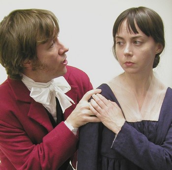 When Charlotte Bronte's novel was first published in 1847, it was received as a bildungsroman, the German term for a novel that concentrates on the experiences that lead to someone's maturity. However, in Mergatroyd Productions' rendition of Jane Eyre, there is very little inclusion of Jane's childhood. The play opens near the end of the novel, and then unfolds as a retracing of some of the past. From the top, the technical difficulties commence with light and sound cues that fall off target. We meet Edward Rochester (Greg Oliver Bodine), a well to do bachelor calling out the name "Jane!" without receiving a response. From there, her life is portrayed as a series of becks that she almost always responds to. But the key word is almost. Plain Jane (Mary Murphy) is first seen as she arrives to take the role of the governess to Adele, Rochester's young ward. Her simple dress betrays her humble beginnings while the flashbacks into her past reveal the horrific overtones. This staging doesn't delve into her once happier childhood, but we do learn that she was once bludgeoned with religion with the presence of domineering Reverend Brocklehurst (Bruce Barton) and despised by Aunt Reed (Alice Connorton), the woman who adopted her after her parents died. Jane survives all of this to become an opinionated, learned, and ethical young woman that won't kowtow any further than her job requires. And it's a good thing too, because her suffering and the building of her character doesn't end in childhood. She'll need a healthy portion of character to handle everything involved with caring for Mr. Rochester. Her admirable qualities make her remarkable to him. And through intellectual exchanges, they discover that they are a good match despite their different stations in life. Unfortunately, it takes just as long to become invested in the performance as it does for Jane and Rochester to establish a connection. The production doesn't become lively until it reaches the one hour mark. The first 60 minutes creeps by with laying the groundwork for the show, but it does so unimpressively. It must be noted that the blandness of Victorian life must have shaped some of McClernan's direction, but that blandness doesn't translate well on stage. There doesn't seem to be any momentum, and at times, the interest in precision lapses. For example, Mary Murphy winds her long hair in a bun to represent the age, but she also has bangs, something that would have been unheard of in the 19th century. Her bun also unravels to distraction, with many large hairpins sticking out of the mass. Here, Jane is not only poor, she's unkempt. Costumes by Vivianne Galloway are mismatched, where some actors wear period shoes while others don't. Also, the dresses appear to be from different eras. There is, however, a scarlet, empire dress worn by Blanche (Annalisa Loeffler) that is striking. In general, the acting hits on all cylinders. The 23 characters from the novel are reduced to 16, with four actors taking on various, memorable roles. Bruce Barton, resembling Kelsey Grammar in appearance, recycles his bombastic speaking voice for all the roles, but still manages to entertain. Alice Connorton and Annalisa Loeffler are both chameleons, deserving mention for their versatility. Unlike the novel, the production spends a great deal of time on Jane's experience with St. John Rivers, her cousin and potential mate. As Rivers, Nat Cassidy is much harsher and religious law-abiding that his character is in the novel, but it also helps us to understand why Jane runs back to Rochester. She not only still loves Rochester, but committing to Rivers is clearly a fate that she doesn't want for herself. The audience doesn't want that for her either. As Jane, Murphy is appropriately meek and blunt at the right times. Although her interactions with Bodine can't be wholly described as fiery, when they do get comfortable with each other and their declarations of love, they do come alive together. Bodine, sometimes rigid and humorless for Rochester's restraints, is debonair when he needs to be. Jane Eyre is an ambitious effort to stage a highly respected, 400 page novel. The fact that they were able to encapsulate the gist of the novel in a two-hour presentation is a feat unto itself. However, some of the technical elements need to be smoother, and some of the staging choices need to be revisited before it can be called a success. And while it does shine in some parts, it won't be winning any new fans of Victorian fiction with the dry and tiresome beginning. Still, there are explorations of views on important themes such as social class, gender relations, morality and religion that are still pertinent today. While you may not be able to identify with corsets and Victorian restraint, the themes discussed in the novel and in this production should be familiar to you as components of the upcoming presidential election.