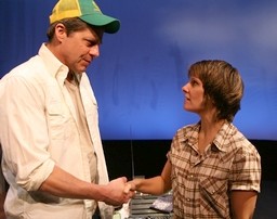 Act Two opens 20 years later without any changes to the scenery, and without any softening in Rick's resolve. Except now, he is withdrawn completely from social activities, making him a hardened, lonely hermit with a poetic soul. He hires Rafael Lamas (Morgan Baker), a good-natured, presumptuous farmhand to help him manage his crops. Now in his forties and set in his ways, there doesn't seem to be a break in sight from his routine until Aggy Taylor (Shorey Walker), an enthusiastic county extension agent, visits his farm for an inspection. Rick (Jeremy Stuart) is resistant to Aggy's presence at first, balking at the invasion in his privacy, but he soon caves in to her agriculturally-savvy, impetuous charm. The pair also learns that they connect on the issue of loss, as Aggy is dealing with the death of her husband and seeking a new beginning. The wonderful dynamic between Walker and Stuart allows for engaging (although sometimes dry) dialogue between one who is in arms and one who is disarming. Walker is part Hilary Swank, part Jodie Foster, and part Reba McIntyre, exhibiting a vibrancy and determination to chip away at Rick's tough husk. Because Aggy is here of her own volition and passion whereas Toni was on the farm with Rick solely because she was devoted to him, she is a more practical match for Rick. Act Two concludes with hope, understanding, and a burgeoning relationship. It also corroborates the initial impression of Act One as an independent piece.
