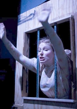 Although the show begins in the throes of loss, mourning becomes no one in the cast, particularly where Pearl Courtland (Sarah Hankins) is concerned. With the gaiety and appearance of Kate Winslet in Sense and Sensibility, Hankins makes us forget time and again that Under the Gaslight's plot is reminiscent of Les Miserables. She pouts and brays, but it is out of jealousy of her cousin Laura (Amanda Jones), not out of sadness. Laura is soon to be married to Ray Trafford (Justin Flagg), a well to do man of society that adores her until his discovery of her meager origins gives him pause. To escape Byke (J.M. McDonough), the villain who alleges to be her father, and to spare her family and friends of the shame, Laura throws herself and her once fortunate life into a miserable exile. Laura may not have been imprisoned like Jean Valjean or left to be the guardian of a child, but Byke, along with his accomplice Old Judas (Maria Deasy), are more than the equivalent of Inspector Javert. Their persecution of her leaves her in rags when she once donned Sidney Fortner's opulent attire. But don't start buying Kleenex yet. Though there are sad times, Under the Gaslight is far from a downer. Written as a melodrama, the performances and situations themselves are too exaggerated to inspire tears. And under Michael Hardart's direction, the comedy in these situations is so rich that your laughter will outweigh your sympathy. The cast may be uniformly strong, but it's the contributions of the supporting players that will keep a smile on your face. As Snorkey, Brad Fraizer reprises the role of the lovable Yankee that he played in The Contrast with perfect comedic timing and mannerisms. His finest moments transpire during the railroad scene, which has come to be known as the play's most famous and inventive. As Peachblossom, Lian-Marie Holmes is a staunchly loyal servant to Laura, throwing words and her body into attack. But the acting is not the only element that seizes the material and takes it to new heights. The staging is equally remarkable. Ralph Petrarca provides a live score of dramatic piano playing that keeps in tandem with the fall and rise of tension as well as the curve of the shenanigans. Coupled with Hardart's direction, Alex Roe's set design, from functional rowboats and railroad tracks to exit and entry points that slide in and out before our eyes, is as integral to your enjoyment of this production as anything else. At two and a half hours, Under the Gaslight could have easily wore out its welcome. But because each moment is so exciting and so professionally crafted, rather than focus on the time, you'll be able to focus on the American culture that is the beating heart of Metropolitan Playhouse's productions. And maybe, just maybe, you'll come to realize that not everything needs revamping after all.