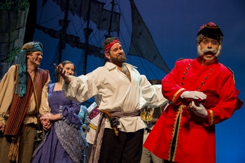 The Pirates of Penzance has never fallen out of favor, despite having premiered in 1879. It might in fact be the most produced musical ever. (You can quibble about whether it's an opera or an operetta or a musical; to me, it's a musical for operatic voices.) I continue to find new bits of cleverness in it that I somehow had missed before. My favorite new discovery is in the love duet between Frederic and Mabel, a parody of all those trite operatic stand-and-delivers: "Oh, here is love, and here is truth / And here is food for joyous laughter / He (she) will be faithful to his (her) sooth / Till we are wed, and even after." That one-letter change, from "ever" to "even"that's the kind of wit that never gets old. You might be wondering why Landmark Musicals is doing Pirates during the holiday season. It's probably for those of us who are Christmas Carol-ed and Nutcracker-ed out. Pirates has absolutely nothing to do with Christmas, but I doubt that you will find a merrier show this season or one that will lift your spirits like this one does. Art Tedesco, the director, has a good eye for comedy, and he wrings a lot of laughs from the ridiculous plot. He is blessed with a terrific, energetic cast and a professional crew. The set by Dahl Delu is fine and accommodates a lot of people on stage at the same time. The costumes for all those people are beautifully done by Rosemary Gallegos, and the sound by Simon Welter is excellent, as is always the case with Landmark. The ten-piece band, conducted by Darby Fegan, sounds wonderful. The standout in the cast is Trey Caperton (winner of Best Actor at the New Mexico High School Musical Theatre Awards this past May) as Frederic, the "slave of duty." Still a junior in high school, he is already professional caliber. He can sing and act with the best of them and has a flair for physical comedy. I look forward to seeing him in anything he has time to do on stage. Warren Asa Wilgus shuffles around like a doddering old fool as the Major-General, which is what the role calls for, and he pulls off his famous patter song with aplomb. J.J. Mancini bounds around the stage as the Pirate King, and once in a while gets to fully display his superb singing voice. Jack Litherland shows remarkable dexterity for a big guy as the police sergeant. Sabina Lueras, also a high school student, handles herself well on stage and has a lovely soprano voice, but as is often the case with sopranos, I had a hard time catching the lyrics to her songs. There are 21 other cast members, and all of them do fine work. Credit again to Art Tedesco, and to stage manager Mackenzee Donham. If you're a long-time theatergoer, you've probably seen Pirates before, but don't let that deter you from seeing this show. With it, Landmark continues its streak of excellent productions of one of the best musicals of all time. The Pirates of Penzance, by Landmark Musicals at the Rodey Theatre in the University of New Mexico Center for the Arts in Albuquerque. Fridays and Saturdays at 7:30, Sundays at 2:00. Through December 10, 2017. Tickets $20 to $26. Info at landmarkmusicals.org, tickets at unmtickets.com. |