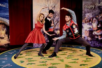 The Adobe Rose Theatre's production of The Ultimate Christmas Show (abridged), written (for the most part) by Reed Martin and Austin Tichenor, falls squarely in that second camp, and has as much fun with those cows (there's actually a cow character in the show) as may be had in the hip hamlet of Santa Fe without, of course, trampling too disrespectfully on what is embraced by lovers of the season. The show is inventively directed by Kate Chavez and Robin Holloway (who also serves as music director). This great team taps into the multiple talents of a wonderfully versatile cast, allowing for a festive spirit of spontaneity and improvisation, which easily makes it their own. Political references are up to date, and the gifted theatrical wunderkind Dylan Norman (he's only twenty!), who has one of the best voices of any singer in Santa Fe right now, does a spot-on impression of our country's pixieish attorney general. Koppany Pusztaicomplete with the appropriate red MAGA capgives us a funny caricature of Donald Trump, to boot. One of the highlights of opening night, and something completely unanticipated, was an audience-abetted rewriting of "The Twelve Days of Christmas" to include "a failed Republican tax bill" and "articles of impeachment." Mariah Olesen rounds out the trio with a wry flair for comedy that easily keeps up with the agile high jinks of her male companions. Other high points of this fast-paced holiday mash-up are send-ups of Clement Clarke Moore's "A Visit from St. Nicholas" (more commonly known as "Twas the Night Before Christmas"), appropriated to address the inconvenience of holiday plane travel, and amusingly delivered by Norman, and a performance by "Elfish" Presley, delivered by Pusztai, who later gives us a great caricature of the original "Jewish mother"Jesus' mom. When the Confederate Christian Carolers can't make the show due to bad weather, our trio is called upon to sing the CCC's KKK version of "I'm Dreaming of a White Christmas" to their hilarious horror. The second act is mostly given over to a "panto" commedia dell'arte telling of the original Christmas story, complete with barn animals; the three Magi, dressed as Bee Geeian disco dancers; visiting shepherds (including a "German shepherd" with a strong Bavarian accent); and occasional commentary by correspondent Wolf Blitzen. The set design by Geoff Webb results in a nice playing area against a backdrop of blow-ups of old-fashioned Christmas cards. It is well served by Michael Blake Oldham's colorful lighting design and a plethora of appropriately zany props gathered by Melissa Chambers. The Ultimate Christmas Show (abridged) does include a bit of audience involvement, but no one goes on stage who doesn't want to. Audiences are also asked to participate in the show's gift exchange. If you didn't bring a gift (five dollars or less in value) to trade for something already under the tree, there are gifts for sale in the lobby. And don't let the title fool you. The show's authors, Reed Martin and Austin Tichenor, longtime members of the Reduced Shakespeare Company, use the word "abridged" in all their theatrical "reductions." In this case it serves as disclaimershould one be requiredof the claim that you'll actually be seeing the ultimate Christmas show. Instead, you'll get to enjoy a very funny full-length attempt at the next best thingwhich the talented folks associated with this production ably deliver, tied up with a nice bow. And don't forget to visit the best concession stand in Santa Fe (I love the coconut-infused popcorn). The Ultimate Christmas Show (abridged), directed by Kate Chavez and Robin Holloway, at the Adobe Rose Theatre, 1213B Parkway Drive, Santa Fe NM. Thursday, Friday, Saturday at 7:00, Sundays at 3:00. Through December 17, 2017. Info at www.adoberosetheatre.org or 505-629-8688. The running time is about two hours, including one intermission. |