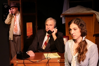 The Water Engine is a thought-provoking 90 minutes of theater by one of the great masters of the medium. It has 19th-century echoes back to the inventions of Isaac Singer and Alexander Graham Bell and 21st-century resonance to Steve Jobs at Apple as well as current efforts to build a hydrogen-powered car. There is even an eerie parallel to President Trump's slogan "Make America great again" in a character's declaration, "We made this country great and once again it shall be great." Although this play, originally written for National Public Radio and first produced on stage in 1977, packs less of an emotional wallop than some of Mamet's later masterworks, it latches onto a basic contradiction of American capitalism, and once it comes to grip with its theme, it locks onto it with the bite and persistence of a bulldog. The question implicitly posed is: Why does a society that brags about its devotion to change, progress and innovation suppress, harass, and try to destroy its most inventive talents? Much as Singer and Bell and Jobs managed to grab credit and wealth from the innovative genius of others, so Charlie Gross (Nicholas Ballas) is persecuted for making an engine that runs on water by generating hydrogen. Such an engine, Ballas insists to skeptics, could drive a car or fly an airplane. The stage is long and narrow and has no set, but there are several props suggesting a 1934 radio studio in Chicago. The characters are all seated in a row in the back and hold scripts from which they read. Their readings concern the virtues of American capitalism, the so-called "century of progress," the supposed rewards of chain letters, various local incidents, and the recent celebration of Chicago's 100th anniversary. Meanwhile Gross and two corrupt lawyers (played by James Jenner and Matthew Montoya) perform the central drama of the play, in which the lawyers try to persuade or force Gross to give up his invention, so they can either destroy it or profit from it. The ensemble cast, including also Karen Gruber Ryan, Tallis Rose, Talia Pura, D. Davis and Suzanne Cross, is enormously skilled. Each actor performs multiple roles. Changes of coat, hat and accent are all that disclose that an actor has doffed one role and donned another. Yet this company makes it work, thanks significantly to the polished work of director and production designer Brenda Lynn Bynum and Cross doubling as stage manager. This is the first play in the first Santa Fe season for the Oasis Theatre Company, a 30-year-old New York group. Oasis describes its mission as "shedding new light on old perceptions," an ambition amply fulfilled in this inaugural production. The Water Engine continues through February 25, 2018, with performances Thursday-Saturday at 7:30 p.m. and Sunday at 2 p.m. For more information and tickets call 917-439-7708 or visit www.theoasistheatre.com. Performances are at Teatro Paraguas, 3205 Calle Marie in Santa Fe NM. |
