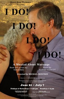 The musical, with books and lyrics by Tom Jones and music by Harvey Schmidt, tells the story of the marriage between Michael and Agnes, from the time of their wedding in 1895 until 1945. All of the action takes place in their bedroom with a fourposter bed (The story was taken from the play by Jan de Hartog, The Fourposter). It opened on Broadway with Robert Preston and Mary Martin, and Carol Burnett and Rock Hudson toured with a production in 1973. We see the ups and downs of the marriage, with songs to enhance the emotion. Most of the songs deliver on their purpose, but the beautiful, "My Cup Runneth Over" is just luscious. The song became a hit for Ed Ames in the 1960s and was covered by countless recording artists, including Aretha Franklin. While much of the story is sentimental (not really a criticism), there are a couple of rough patches in the marriage that dig into the more serious challenges of a long-term relationship. All and all, across the 50 years we see a robust affirmation of marriage. One interesting twist in the Desert Rose production is the casting. While Durden and Coffing play the couple at a young age, the older versions are played by Coffing's parents, Mark and Carol Coffing. Another Coffing daughter, Natasha, is half of the musical duo providing accompaniment, playing violin with Ben Jacobson on piano. It's an impressive family affair. Durden and Evelyn Coffing were paired up in Desert Rose's last production, I Love You, You're Perfect, Now Change, where they were delightful in both song and acting. Here, they're every bit as strong, even though the material isn't as bright and effervescent. Coffing is exquisitely adorable, offering a tremendously expressive voice, and Durden just keeps growing in his acting and singing. The first act, which is almost entirely Durden and Coffing, is just delicious. In addition to the power these two actors bring individually, they also ignite a bright chemistry together. The second act features the couple 50 years later. While Mark and Carol Coffing give it their all, they just don't rise to the energy and pizazz of the earlier scenes. Perhaps this is partly due to a weaker story and song in the second act. At any rate, much of the air goes out of the musical at that point. The energy picks back up when Durden and Coffing return toward the close. The live musical accompaniment is wonderful. This is the third time I've seen Jacobson at the keyboards, and the second time I've seen Coffing. Jacobson has grown considerably since I first saw him in Beehive! The 60s Musical, which was his first go-round with a musical. Coffing displays a lovely musical touch. It's not surprising to learn she tours this country and Ireland as part of the musical duo, the Singing Pilgrims. Director Montroy has consistently delivered strong productions at the Desert Rose. This one has a lagging second act, but the first act is pure pleasure. The support crew includes Karen Byers offering choreography, props, costumes, and set dressing. Set design is by Shiela Freed, music design is by Montroy, and lighting design is by Evelyn Coffing. I Do! I Do! I Do! I Do!, through July 7, 2019, at the Desert Rose Playhouse, 6921 Montgomery Avenue NE, Albuquerque NM. Performances are on Fridays and Saturdays at 7:30 pm and Sundays at 2:00. Tickets are $25 for general admission and $20 for students, seniors, and ATC members. For reservations, visit desertroseplayhouse.net |