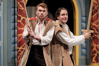 The Vortex production is a rambunctious, high-spirited and energetic performance of the 1987 send-up of the Bard's canonical collection of compositions, written and originally performed by Adam Long, Daniel Singer, and Jess Winfield, aka The Reduced Shakespeare Company. This comedy, after its initial Edinburgh Festival Fringe debut, went on to play for nine years in London's West End, and has been produced many times in this country and around the world. Shakespeare in its uncut form is, I think, rather like healthcarenot everyone gets it. Abridged, however, is a different kettle of fish entirely. This parody is open to all, and though the more familiarity one has, the more enjoyment one gets, it is certainly also true that everyone will come away with, if not a greater understanding, at least some reassurance that the Bard is not to be feared. So bring your kids. Te play has been cleverly updated (cell phones and a Miley Cyrus reference to name a couple), as the hyperactive and intensely physical trio of waggish entertainers dismantle some of the most famous lines in English literature and spew them out at warp speed. Thirty-seven plays in a couple of hours leads to a veritable reformation: 36 plays in the first act alone, interpreted and depicted with irreverent hilarity; Romeo and Juliet's balcony scene is a riot, Juliet's sigh a la Meg Ryan, even more so. The "Scottish play" has more r's than all clans combined, and I doubt one could call oneself a Shakespeare scholar unless one has lived through the experience of an Andronicus patris et filia high-five. The second act is Hamlet. Oozing agony, our hero is bested only by Ophelia, who takes her final scene to new heights, or rather depths. Never before, and probably never again, shall I laugh aloud as someone drowns. The audience also seemed to loved the showthe guy in front of me was wiping his eyes throughout, especially when King John (I think), sat on his lap, and the girl beside me repeated almost everything that was said onstage, so she could laugh again. With a lot of intentional (and some unintentional) audience participation, this show will be different each time, adding to the fun. Ryan Jason Cook, Daniel T. Cornish, and Caleb Daniel Ramsell play themselves, playing themselves playing Shakespeare. It's not as complicated as it soundswe are introduced to the cast as if we were aboard a plane, and the preflight safety check is our initiation into the ensuing lunacy. Very clever. Cook and Cornish performed this show together six years ago at Albuquerque Little Theatre and were great in their multiple roles. They are a lot of fun, jointly and individually. The absolute standout, however, is Caleb Ramsell. This youngster just turned twenty and is quite remarkable. His seemingly boundless talents are used to great effect here. He not only steps in and out of a slew of characters, but also has a charming and disarming way about him, alternately leaping or strolling across an ultimately nonexistent fourth wall. Ramsell is like everyone's annoying younger brother: you need him to make up the team, and generally he does as he's told. It's the other times, the times he asks questions, the times he just doesn't want to play, the times he wants his own wayit's these times, peppered throughout the performance, when Ramsell really shines. Ramsell will find himself in great demand if he hasn't already. When the illustrious trio initially came leaping out to greet us, I recognized their shirts as Carolyn Hogan classics; the remainder of the very extensive costuming owes its existence to Rhonda Backinoff, who is obviously having a blast with this production. The set is lovely, beautifully constructed and painted. Its earnest solemnity is a perfect dupe to the hullabaloo that followskudos to Ryan Jason Cook and others. I also send a shout-out to the tech folks for their contortionsthere is a whole lot going on with this one. In fact, a shout-out to everyone involved. The A/C was non-existent the night I attended, and the entire audience (of almost a full house) fanned themselves constantlyhot as we were, I cannot imagine how the cast and dressing crew coped with the enormous number of costume changes. I sincerely hope the air conditioning has been repaired. Altogether, this is a very fun show, and highly recommended. I got the greatest kick out of it, and intend making a return visit to catch many of the "blink and you miss it" moments I know I for sure, missed. The Complete Works of William Shakespeare (abridged), through August 18, 2019, at The Vortex Theatre, 2900 Carlisle Blvd. NE, Albuquerque NM. Performances are Fridays and Saturdays at 7.30pm, Sundays at 2.00pm. Tickets are $22.00 and available at www.vortexabq.org, by calling 505-247-8600, or directly at the box office. |