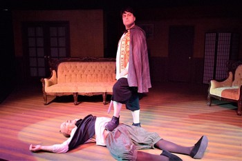 Travelling by train, Leo and Jack, freshly ejected from the lowliest of low playhouses and both on their uppers, read a random newspaper article telling of a wealthy, ailing elderly lady seeking the whereabouts of her long-lost relatives (taken as children) in order to leave them a sizable inheritance before she dies. Then, in one of life's stunning coincidences, after an equally random travelling companion tells them of the woman's death, Leo and Jack plan to masquerade as the heirs, collect the money, and live, one assumes, happily ever after. This is characteristic of Ludwig's style; playfully ribbing thespians for their self-importance and inflated self-worth. Despite discovering a slightly enormous drawback, our duo continue on their quest. Not surprisingly, pandemonium ensues, and continues on the recognizable path of farce, a charming mixture of comedy, high and low, where bawdy, physical humor and silly visuals form a variety of unlikely couplings with the comedies of both manners and ideas. The best farces seem effortless, despite depending upon a feisty collaborative ensemble, able to ride rising waves of increasingly improbable situations to an emotional, spirited climax. Opening weekend's lively housewell aware of Hauser's fortewaited with barely contained glee. And this production didn't disappoint. Scene after scene flash by. Fourth walls are broken, rebuilt, and occasionally vanished. We, the audience, become part of the play before being hurtled back to oblivion as the action accelerates before us. Ludwig shows unerring instinct and somewhat unexpected forethought in this play. His unexpectedly rounded characters, more so than in some of his other offerings, together with deeper and unforeseen undercurrents, produce, as directed by Hauser, an unanticipated prickle to the back of the eye, and demonstrate why the director is much beloved of his cast. This is an undeniably hilarious productiona lovely, funny script with a lovely funny group of actors, and it's worth every penny to see certain things you may never unsee. When the pair discover they have to be nieces, not nephews (enter Maxine and Stephanie), and Leo falls in love with the elderly lady's niece Meg, who is inconveniently engaged to the local curate Duncan. The random travelling companion turns out to be Meg's best pal Audrey, who is enamored of Jack, and the local doctor desperately wants his son Butch to marry money, which can only happen when the elderly lady, Florence, dies. Amid all this drama is the ongoing squabble between Leo and Jack. It seems complicated (a scene breakdown in the program might have been helpful) and would be except for the staging and the pace of this riotous assemblage. Tim Crofton is definitely an asset to the New Mexico theatre scene, and this talented cast provides a respectable ballast to his outrageous talent. (For the most part, the disparity of ability which can typify local productions is not evident here). His cheerfully lusty, mildly lecherous Leo, who alternates between bashful and brave, reminded me of either a 1970s talk show host, or, with a moustache, a '70s porn star, ensuring that he and we enjoy every moment he's onstage. His Maxine, a softer version with various cup sizes hovering over a chest which speaks of a childhood filled with breakfast porridgehe's so happily in touch with his inner femme in this roleis warm and loving yet hilarious as she/he comforts Meg, all the while trying to hide his/her shameless desire. Crofton's flawless costume changes are to be applauded, recovering as he is from recent rotator-cuff surgery (shout out to dresser, Jennifer Benoit). Partner in crime, Tom Hudgens' Jack is the epitome of the put-upon, ever loyal friend. Mild and rather unadventurous, we can feel his panic when Leo suggests his plan. Hudgens (whom I saw in a much smaller role in Shakespeare in Hollywood last year) is a scream as Stephanie. Blonde flowing tresses above a large hirsute physique, with sometimes uneven bosoms and a strong tendency toward gracelessness, his femininity borders more on the parodic. The scene in which she escapes the unwanted passion of the doctor is really funny, and the straits she puts Leo into toward the end of the play are a riot. Crofton and Hudgens are the dream team of cross-dressers. Erika Zepeda is very well cast in the role of Meg. I last saw her in Farragut North and noted her understated talent. In Leading Ladies, we see her grow from an innocent, inexperienced girl to the shrewd young woman she needed to be to flee a loveless union. She trips over a plethora of emotions while falling in love with the "wrong" half of a cross-dresser and is captivatingly hilarious as she comes to terms with what she sees as her new reality. Meg's evolution as a character, by turns awkwardly or graciously accomplished by Zepeda, is a fine example of the increased rounding built into the characters, and why we learn to care for them more. Audrey, played by Christa Bell, is a roller-skating nit-wit; it could be said that, if she ever had a thought it would have died of loneliness. However, she also manages to consistently spurt out the truth, not that anyone takes any heed. Bell does a fine job being both charming and maddening in this role. Then there's Butch (Daniel Anaya), who is so adorable in his varsity sweater and pulls every heartstring as he desperately tries to be the man his father wants him to be. But no matter how hard he tries, and he does, this poor lad is not destined even for mediocrity. Butch's father Doc (James Kitzmiller) flies the flag of the present administration. Denying his ineptitude as a doctor even in the face of incontestable evidence, he insists his son marries well, even as he himself falls foul to temptation and gets mixed up in the screamingly funny muddle resulting in his exposure. So well done. And then there's Duncan, the minister who, under Kenneth Bennington's care, is a somewhat creepy beau, fairly oozing republica