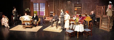 The setting is quaint enough. Everything takes place in an English country house in the 1920s. As we enter the theater, Brad Clement is at the piano playing instrumental versions of pop songs from the 1920s. Even though Clement isn't officially a character in the play, he will slam the piano keys when he's not happy with the characters. Kind of a 1920s Greek chorus. The action begins with the two youngest members of the Bliss family (yes, the name is darkly ironic). Sorel (Paige Underwood-Fleming) and her brother Simon (Caleb Ramsell) are lounging around discussing the guests they have invited to the house for the weekend. Soon their mother, Judith (Colleen Neary McClure), a former actress, joins them. She too has invited a guest. Later we find out the father, novelist David Bliss (Mark Danley), has also invited a guest. None of the family members has let the others know about the invited guests. Rounding out the family is Clara (Patricia Thompson), the colorful housekeeper with a jump in her step. As the guests arrive, we see that each comes with individual peculiarities. Then, in a fitting form for drawing-room humor, each guest is attracted to a Bliss family member who is not the one who offered the invitation. So the weekend becomes a complete meltdown, with different matchups scurrying into various rooms and returning to the drawing room having "kissed." While the interplay is a complete mess, with powerful infatuations that seem to last only a few minutes, we do get to see that the Bliss family is a complete disaster, far beyond simple dysfunction. Every gesture, every cruel word generates grievance and resentment. Yet on some screwy level, the crazy family members seem to enjoy the madness. It's as though George and Martha had morphed into Lucy and Desi. And it all concludes in dastardly fireworks. Just hilarious. Director Marlo Cabrera has loaded up this production with stellar actors, and he gets some terrific performances from each one. This is a well-oiled ensemble that includes a number of delicious individual performances. With the small role of Clara, Thompson dashes off surprising body comedy that's always funny. Ramsell as Simon is an absolute force of nature. He seems to be pulling from a very strange internal place to deliver a character that comes from the planet Id. The high acting kudos go to Neary McClure as Judith. She has been strong in each of the many performances I've seen her in. She always finds that personality kernel that brings life and depth to the character. In Hay Fever, she's at her best. She can stand perfectly still and bring down the house with the move of an eyebrow or a twist of the mouth. The production team delivers well. Mickey Gammill has put together a sturdy set that functions well through all physical comedy. The costumes by Rhonda Backinoff are tons of fun, especially the get-up Simon wears during the opening scene–just brilliant It's a strong and funny play throughout. Hay Fever, presented by West End Productions, runs through May 15, 2022, at the VSA North Fourth Art Center, 4904 4th St. NW, Albuquerque NM. Performances are at 7:30 p.m. on Thursday, Friday, and Saturday, and at 2:00 p.m. on Saturday and Sunday. General admission is $23. Discounted admission is $22 for ATG members, military, students, and seniors (62+). Tickets at the door are an additional $2. For tickets and information, please visit westendproductions.org or call 855-937-8505. |