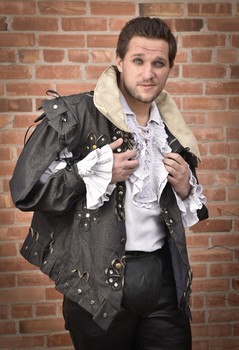 Nigel Bottom? The brother of Nick Bottom, immortalized in A Midsummer Night's Dream as the "rude mechanical" who runs an amateur theatrical troupe and who is temporarily turned into an ass. In Something Rotten!, Nick Bottom runs a theatre troupe; Nigel, a sensitive poetic soul, writes sonnets and plays. William Shakespeare started out in the troupe but broke off to start his own company and now, after Romeo and Juliet, is a superstar poet and playwright surrounded by adoring fans a la Elvis. The Bottom brothers' troupe is failing fast and their foppish aristocratic patron threatens to stop supporting them unless they come up with something new and forward-thinking. Nick, who has not one whit of creativity in him, consults a soothsayer to find out what the future of theatre will be. This is Nostradamus–not the Nostradamus but his nephew Thomas. Peering into the hazy times to come, Nostradamus predicts that what will bring audiences into theaters is MUSICALS! There will be shows in which there is dialogue, then suddenly people start singing. Sometimes they start dancing, too. Sometimes they sing and dance at the same time. Inconceivable, from a 1590s point of view. Opera hadn't even been invented yet. This leads into the best number in the show, called simply "A Musical." It is a lightning-fast run-through of almost every hit musical of the past 70 years, from Rodgers and Hammerstein on, including West Side Story, Annie, Fiddler, Cabaret, Les Misérables, and a lot more. It moves so fast that it requires crack timing by every member of the cast, and they pull it off perfectly here. It's the kind of thing I love about live theatre. Bottom decides to mount a musical about something in recent memory, and so we get a production number about the Black Plague. Well, that's not going to work, so it's back to Nostradamus's nephew. This time Nick asks him to look for what will be Shakespeare's biggest hit, so that Nick's troupe can beat him to it. The future is a little cloudy but it looks like something called "Ahmlet." And so in the second act, we get a musical about omelettes! That's the kind of silliness this play deals in. I found it to be a lot of fun, but I have to say that if you're not familiar with Shakespeare or haven't attended many Broadway musicals, you might find Something Rotten! to be one of the craziest shows you've ever seen. If you're a theatre person, though, it should be right up your alley.