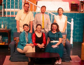 The plot follows Judy's life as a 1950s housewife in England. The audience gets a unique view into Judy's safe haven, her home. However, as financial troubles spiral into troubles in her marriage, the illusion of her perfect life is shattered, and Judy, as well as the audience, is forced to confront important questions of identity and personal values. The cast of this production consists of six actors, including director Colleen Neary McClure playing Sylvia. The lead role of Judy is played by Fawn Hanson. Her incredible performance breathes life into the character. The audience could really empathize with her character, laughing and crying right along with her. Judy's husband Johnny is played by Parker Owen, the perfect pairing to Hanson's Judy. Owen's performance allows the audience to feel Johnny's frustration with his situation, making the conflict all the more real to them. The rest of the cast are equally fantastic. Versai Knight's portrayal of Fran offers the perfect amount of comedic relief for every scene she is in, not only through her words, but through her expressiveness in her body language. Caedmon Holland's portrait of Marcus is excellent, especially when his true nature is revealed and we can see his personality shift. This relatively small cast brings Judy's world to life and gives the audience a very immersive experience. The design elements of the production are equally as impressive as the acting. The set, designed by Ryan Jason Cook, is marvelously intricate, transforming the space into a '50s home. The set is leveled, with a lower living area with couches, an antique TV, and a record player, among other small details that make it so life-like. Stage right there is a small step up to a kitchen, with an old refrigerator, cupboards, and checkered flooring. This space is full of props that allow the audience to see how Judy's life revolves around this space, from the '50s food tins to her book on housekeeping. While the lower levels are very intricate, the crown-jewel is by far the upper level. Upstage there is a staircase that leads to the bedroom, and another door that is implied to be the bathroom. The bedroom is on a platform and completely visible to the audience. The many different areas in the set allow multiple different scenes to occur at once, all in view of the audience. The show is also very intricate from a technical perspective. This is primarily due to the large amounts of food the characters have to eat on stage. Judy's life is centered around keeping a good home, and this means she always has different food for her guests. However, this creates a big job for the crew of the show, restocking the refrigerator and cupboards with the right food at the right times, keeping the teapot full, and clearing away dirty dishes at the end of every scene. The crew does a very professional job of this, acting quickly and disappearing by the time the lights are up. The many blackouts also serve to create one of my favorite aspects of the show, that being the dance interludes, performed by Versai Knight and Caedmon Holland. These interludes help break up the dialogue scenes, and toward the end also tell the story of the characters' relationships, all without any dialogue. This spectacular show taps into many prevalent conversations. It lets the audience have a lens through which they can examine issues of feminism, the trad-wife movement, and women's rights. It allows them to watch as Judy's illusion of her perfect '50s life is shattered, and more importantly, watch as she struggles to rebuild her life and her scene of identity. It shows two very different value systems, through Judy and her mother Sylvia, and prompts them to ask themselves about their own values. This show is intricately designed, vividly performed, and flawlessly executed. Home, I'm Darling runs through September 15, 2024, at West End Productions, North Fourth Art Center, 4904 Fourth NW Albuquerque NM. For tickets and information, please visit www.westendproductions.org. |