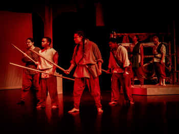 Quite simply, this is a production one does not want to miss. Under the expert direction of Quinn Mader, a talented and experienced company delivers a beautifully designed, action packed, and skillfully and sensitively acted show. The pace never lags in the two-hour, ten-minute running time. On opening night, the play was error free and completely engaging. Coriolanus is one of the lesser-produced Shakespearian tragedies. The play's theme of discontent with government has made it popular during turbulent times. Its examination of power, class, pride, and honor along with its many fight scenes have also endeared it to many male actors. Coriolanus has been played by several outstanding male actors, including Paul Scofield, Ian McKellen, Tommy Lee Jones, Toby Stephens, Christopher Walken, Morgan Freeman, Ralph Fiennes, Tom Hiddleston and David Oyelowo. A 2011 film starred and was directed by Ralph Fiennes and included Vanessa Redgrave as Volumnia, Brian Cox as Menenius, and Gerard Butler as Tullus Aufidius. It is a political tragedy, a family tragedy, and a personal tragedy that examines conflict, power, and revenge. There are many good things about this production. The integrated music and sound are well chosen and executed with precision. The movement and fight choreography are also beautifully done. In a relatively small performing area, excellent decisions are made that enhance the fight scenes. Lauren Senechal is the set and costume designer and the fight director. The creative decisions she made in all these areas are exceptional. Costumes are thoughtfully created and colors are used to signal the allegiances of the warring groups. The set uses the entire space with multiple levels and set pieces that convey the ancient setting with simple and iconic symbols. Prop designer Quinten Avila provides props that are easily used by the actors and evoke the ancient time of the play. Sound and music have been designed by Crash Buist, who also plays Coriolanus. This facilitates the actor's timing and use of the drums and fighting sticks on stage. Veteran lighting designer Riley Lewis lights all the action well and provides an eerie and somber atmosphere that suits the play. In short, all the physical elements are thoughtful and specific and in service of the overall aesthetic. The acting in this production is top notch. Every member of the cast, from the most minor plebian to Coriolanus, is focused and engaged. Of special mention is Crash Buist as Coriolanus, who brings a rough fighter's sensibility to the role while handling the Shakespearian language well. Owen Reid Callis is outstanding as Menenius, providing humor and explicating the action. But it is Augusta Allen-Jones as Volumnia, Coriolanus' mother, who brings the most completely developed character to the play. This role is truly an actor's dream, and Allen-Jones is excellent. Her steely resolve and her touching love for her son are clear in her portrayal. This is one of the best productions seen in Albuquerque in the recent past. Many talented performers and creatives have come together to make it a must-see show. Don't miss the chance to see this rarely produced Shakespearean tragedy. Coriolanus runs through October 26, 2025, at North 4th Theatre, 4904 4th St. NW, Albuquerque NM. Performances are Thursday - Sunday at 7:30 pm, Sunday matinee at 2 pm. General Admission $25, Discounted $22. For tickets and information, please visit nmshakes.org Directed by Quinn Mander, Set and Costume Designer & Fight Director Lauren Senechal, Sound Designer Crash Buist, Lighting Designer Riley Lewis, Prop Designer Quinten Avila, Assistant Director Alexis M Hadsall, Production Stage Manager Arianne Cohen. The Cast: Crash Buist, Augusta Allen-Jones, Owen Reid Callis, Alex Glover, Ian Gabriel, Lauren Senechal, Owen Danan Martin, Nicee Brown, Neil Faulconbridge, Vee Council, Colyn Morris, Jesse Liesveld, Robyn Casper, Ryan Sloan, Quinn M. Mander, Theo Rosolino. |