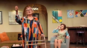 The Adobe Theater seems to find these semi-famous authors whose plays are perfect for their older baby boomer audience, including yours truly. This is a play about learning to keep living as one grows older and embracing love at every age. The message is uplifting and the tight, well-directed and acted production is a delight. It's the mid-1980s in New York City where three nice Jewish couples are dealing with family issues. Specifically, one sister, Barbara Kahn (Clair Gardner), and her husband David (Jeffery Siddall) are upper-class art dealers in New York City, while the other sister, Trudy Heyman (jenny Miller), and her accountant husband Martin (Joel Daniel Miller) are solid middle-class Long Island suburbanites. Barbara and Trudy are trying to take care of their aging mother, Sophie Greengrass (Stephanie Larragoite), together but don't really agree on how to deal with her. The ongoing and seething disagreement comes to a head when the Heymans have to visit their daughter, who is involved in a sexual love triangle, at college. They leave their aging mother with David and Barbara who introduce her to Maurice Koenig (James Pinkston), an older, well-known successful artist. Sparks fly and love is in the air. The script has many clever double meanings as the couples discuss the daughter's sexual adventures and the activities of Sophie and Maurice. All the actors are adept at punching the lines with great comic timing. The entire cast has captured the style and essence of a screwball comedy. Director Lewis Hauser keeps the pace light and moves the action along. The two acts in two hours fly by. The physical aspects of the production are suitable and appropriate. Linda Wilson has designed a set and properties that reflect the uncluttered style of an upscale New York apartment. Riley Lewis' lighting is unobtrusive and bright. Costumes by Jason Godin are acceptable for each character but could fit the actors better. Given the limited space, choreographer Michelle Eiland does her best with two pivotal dances It is a handsome production with little extraneous physical things to get in the way of the action. It is not possible to single out any actor because they are all excellent. The cast includes Albuquerque veterans and some newer faces. They work together as an ensemble. Kudos to Stage Manager Ava "Mac" Gutierrez, who keeps the show on track. The minimal set changes are exceptionally smooth. This is an ideal play for the somewhat older crowd, but young people will appreciate the slapstick comedy. Give yourself some Social Security! Social Security runs through March 22, 2026, at the Adobe Theater, 9813 4th Street NW, Albuquerque NM. Performances are Fridays and Saturdays at 7:30 pm, Sundays at 2:00 pm, and two Thursdays March 5 & 19 at 7:30. General Admission $26.00. Discount Admission $22.00, Student Admission $17.00. For tickets and information, please visit www.adobetheater.org or call 505-898-9222. Directed by Lewis Hauser, Set and Props Designer: Linda Wilson, Lighting Designer: Riley Lewis, Costume Designer: Jason Godin, Choreographer: Michelle Eiland, Stage Manager: Ava "Mac" Gutierrez. The Cast: Jeffery Siddall, Clair Gardner, Jenny Miller, Joel Daniel Miller, Stephanie Larragoite, James Pinkston. |