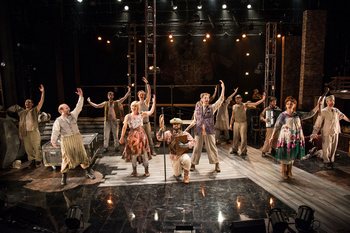 Man of La Mancha is the Broadway installment within the Don Quixote corpus; the Tony Award winning musicala combined effort among Dale Wasserman (book), Mitch Leigh (music), and Joe Darion (lyrics)is adapted from Wasserman's live, non-musical teleplay, which aired on CBS in 1959 and was in turn inspired by Miguel de Cervantes' classic seventeenth-century novel. The musical itself is fittingly self-referential: Cervantes, the protagonist, is imprisoned during the Spanish Inquisition, and while awaiting his hearing he and his fellow prisoners perform a play within the play about the would-be knight Don Quixote, whom our fictionalized Cervantes portrays. The format, while multilayered, is not unwieldy. It reminds me of productions of Peter Pan I've seen, where the characters onstage are themselves playacting, pulling together makeshift costumes and set pieces, flickering in and out of their own theatrical world, and it enhances the imaginative, somewhat magical sensibilities of Cervantes/Don Quixotea "pursuer of lofty undertakings," as his companion Sancho Panza describes him. Maurice Emmanuel Parent leads the way as Cervantes and Don Quixote, alternating between the two characters as seamlessly as he does between belting melodramatic songs and delivering refined, calmer beats. Parent performed previously in New Rep's The Gift Horse, The Snow Queen, and Camelot, among others; he is a resident company member with Actors' Shakespeare Project and recipient of Elliot Norton, IRNE, and ArtsImpulse Awards. It's through his character(s) that the production walks the line between inspirational optimism and unrealistic, even blind, idealism; they're having fun playacting as knights and noble ladies, but they're still in prison, after all. Is this a temporary, and ultimately foolish, distraction from bleak reality, or an aspiration to a higher mode of being? This is the driving question, one that Parent carries adeptly on his shoulders throughout, managing to imbue even over-the-top Don Quixote with powerful, nuanced emotion. Michael Levesque plays Cervantes' secretary/Don Quixote's companion Sancho Panza: down-to-earth, desperately loyal, and the perfect foil to Cervantes. This is Levesque's New Rep debut, with previous credits including Altar Boyz (Greater Boston Stage Company) and Next to Normal, Bloody Bloody Andrew Jackson, and Far From Heaven (SpeakEasy Stage Company). He is extremely likeable, earnest, and spends most of the play strumming either a guitar or ukulele with wonderful, charming effect. When the story demands it, though, Levesque might surprise youand will certainly move youwith his capacity for depth. The supporting ensemble members all bring unique energy and character to the production, regardless of how much or little dialogue they have. Ivy Ryan (BFA in Acting, Boston University, and formerly of New Rep's Classic Repertory Company touring productions), whose prisoner is constantly curious, good-humored, and eager to participate, proves her vocal talent in the lilting, humorous number "I'm Only Thinking of Him." Also featured in that song is Stefan Barner as Father Pérez, who almost steals a few numbers with his powerful voice (previous credits, unsurprisingly, are rife with national and international opera performances). Like its titular "man," the entire production is buzzing with energy, permeated with rich music (featuring live, on-stage accompaniment in addition to many actors passing around instruments), and reaching for nobility and justice despite the obstacles and pains life throws in the way. Man of La Mancha, through December 24, 2017, in the MainStage theater at the Mosesian Center for the Arts, 321 Arsenal Street, Watertown MA. Tickets are $22-$72 and may be purchased by calling the New Rep box office at 617-923-8487 or visiting newrep.org. Student, senior, and group discounts are available, as are subscription packages. |