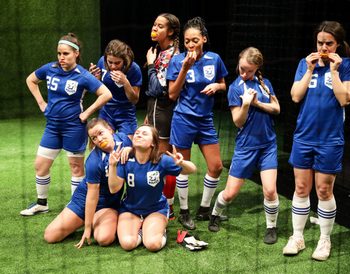 "We are the Wolves!" the girls chant before each match, their voices increasing in volume and determination. The first time we hear it, it's a proud rally cry. But after everything that happens during the 90-minute play, the chant becomes something else: a heartbreaking, fiercely defiant mantra to live by. These girls are realizing their power, on and off the field. One of the joys of The Wolves is watching them mature over a few short weeks. Before their first game, they are chatty and highly opinionated, their thoughts meandering like only teenagers' could, from Twitter to their periods to the atrocities of the Khmer Rouge in Cambodia. Their minds move a mile a minute, flipping between serious and absurd on a dime. We have the brash know-it-alls, the cool kids, the girls who try hard to be liked, the ones who stay quietly focused. As their conversations overlap in a counterpoint of sound at times lyrical and at others cacophonous, the team executes the day's warm-up stretches and squats with astonishing precision. DeLappe clearly understands the humor and anxiety of being a teenager on the cusp of adulthood. Better yet, she trusts the audience to get to know these girls' distinct personalities and inner lives with clues carefully dropped throughout the performance: their apprehensions, their love lives, their hopes for the future. Player #2 (Chelsea Evered) is cheerfully knitting scarves to support Mexican children detained in cages, while the team's all-star striker #7 (Olivia Z. Cote, perfectly bad-ass) shuts down everyone's political ineptness: "You guys are a bunch of fascists!" Every time a match is about to begin, the perfectionist goalie (Simone Black, who does a lot by saying little) rushes off to throw up. And there's the new girl, #46 (Lydia Barnett-Mulligan, charmingly out there), a mystery to the other girls. She calls the sport "football" and lives in a "yogurt"one girl's malaprop way of describing a yurt. I can't single out every cast member, but they are all key to the play's impact, bursting with untamed energy and spontaneity. It's easy to forget we're watching actors and not just regular teenagers. And they're up to the physical challenge of a play that keeps them in constant motion. In one scene, #25 (Valerie Terranova), the team captain, leads the players running circles around the theater, adding kicks and grapevines without breaking a sweat. One of the older girls, she nicely balances her need to be part of the team with the authority required to be captain. Like all of the girls, she's learning how to grow up. This indoor soccer field starts out as a private space, these girls' own isolated world where they can be uninhibited without adults hovering around to listen. But as the season goes on, they have to deal with disagreements, losses, andat the endsome devastating news that will change them forever. The Wolves is in the excellent hands of director A. Nora Long, who leads an all-female team of designers and stage managers at Lyric Stage. Long and all of her collaborators deserve credit for making these characters feel so personal. There's a clear affection in the writing and performance for these young women, for making sure their distinct voices are lifted up. The only unusual creative choice is the net that surrounds the stage. This does allow the actors more freedom to pass and throw the ball, but I'd love to see the show again without the physical barrier separating us from the action. These young women will soon graduate from adolescence and join us in the real world. Everything is changing; everyone's working out their own identity. Over the course of DeLappe's uncanny play, these girls learn how to bring their complicated individual selves together to form something formidable, even unstoppable. The Wolves, through February 3, 2019, at The Lyric Stage Company of Boston, 140 Clarendon Street, Boston MA. Tickets can be purchased at lyricstage.com, by phone at 617-585-5678, or in person at the Lyric Stage box office. Cast: Creative Team: |