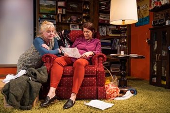 Chief among the rule-bending techniques Kron employs is the elimination of the fourth wall. She invites, or requires, engagement with the audience, not so much in any active, participatory way, but by speaking directly at us, sometimes conspiratorially, and reaching out to distribute little American flags when she reminisces about the Fourth of July. At one point, feeling the need to be hospitable, Ann tosses mini-bags of snacks to some of the audience. Mostly, there is simply a feeling of intimacy and belonging that Ryder and Foley convey, giving us the experience of sitting in the latter's living room with a pair of convivial hosts. Although Well is scripted, it comes off as a little bit improv or ad lib, and very conversational. Kron's central thesis deals with the issues of illness and wellness, asking why some people are sick and others are well, why some sick people stay sick while others get well, and what is the difference between those types of people? She tells us that the play is not about her mother and herself, although Ann has been chronically ill her whole life, and Lisa was sick as a younger woman, but got better. Through a series of vignettes and calling upon her memories of people in her life, Lisa is both narrator and guide as she explores events that she hopes will give her clarity. Joining her on the journey are actors who play multiple characters: Daniel Boudreau (Howard Norris, Head Nurse), Jade Guerra (Lori, Kay, Mrs. Price, Cynthia), Diana Lobontiu (Joy, Dottie), and Joshua Wolf Coleman (Little Oscar, Big Oscar, Nurse #2). Lisa revisits the people and places of her childhood neighborhood in Lansing, Michigan, and the Allergy Unit of the hospital where she spent time. The ensemble is composed of a cohesive quartet who hit all the comic notes, even as they underscore the laughs with the serious side of some of the issues. Despite her own ill health and low energy, Ann organized a neighborhood association to promote integration because she thought it best to live in an integrated neighborhood. The supporting cast represent members of the association, Lisa's playmates, and both staff and other patients from the hospital, and they all do a stellar job of differentiating their characters. Five panels form a semi-circular upstage "wall" upon which are projected a series of colors and shapes to indicate the locale of each scene, and a hospital bed is wheeled on and off, as needed. The greatest scenic detail (set design, David Towlun) is provided for Ann's corner of the stage, with jam-packed shelves, shag carpeting, a stairway suggesting a second floor, a door that leads to the (unseen) kitchen, all surrounding a large reclining chair where Ann is sleeping when we enter the theater. Lighting designer Graham Edmondson uses warm tones for Ann's corner, bright whiteness for the hospital, and a special spotlight on Lisa when she wishes to share some secrets with the audience, out of her mother's earshot. Chelsea Kerl's costumes help to define the characters and are evocative of the late 1960s-early '70s when Lisa was growing up. Well is an enjoyable, idiosyncratic piece of theater that is marked by clever writing and staging, but the Wellesley Repertory Theatre production is to be treasured especially for the performances of Ryder and Foley. As a duo, they capture the essence of the charged mother-daughter relationship, seesawing between love and exasperation. Individually, Foley just becomes Ann Kron with her warmth and down to earth wisdom in plain view. Ryder carries much of the show on her narrow shoulders, capturing the myriad aspects of Lisa's personality, while presenting as an extremely engaging (if neurotic) character. It is her first WRT show, but hopefully only the first of many. For a night of healing, go see Well. Well, through February 10, 2019, at Wellesley Repertory Theatre, in the Ruth Nagel Jones Theatre, Alumnae Hall, 106 Central Street, Wellesley MA. Box Office 781-283-2000 or www.wellesleyrep.org. Written by Lisa Kron, Directed by Marta Rainer; Set Design, David Towlun; Costume Design, Chelsea Kerl; Sound Design, George Cooke; Lighting Design, Graham Edmondson; Stage Manager, Lindsay Garofalo; Assistant Stage Manager, Kim Burton; Props Master, Kim Towlun Cast: Sebastian Ryder, Lisa Foley, Daniel Boudreau, Jade Guerra, Diana Lobontiu, Joshua Wolf Coleman |