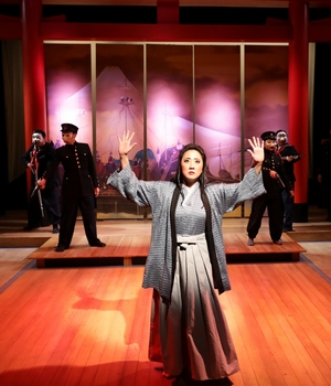 Today, Pacific Overtures may be one of Stephen Sondheim's least-known efforts. This musical opened on Broadway in 1976 in an impressive and innovative run of shows written by Sondheim in tandem with director Hal Prince. John Weidman, who would later collaborate with Sondheim on Assassins, wrote the book. After the success of Company and A Little Night Music, a tale of 19th-century Japan opening trade to the West was an unconventional subject to musicalize. Even now, it's not staged often; you're likely to find ten Sunday in the Park with Georges before you have a chance to see Pacific Overtures. Under the thoughtful direction of Spiro Veloudos, the Lyric Stage Company offers a beautifully minimalist read on this underappreciated musical, showcasing its plaintive music and making a case for its admirable reexamination of history from Japan's point of view. With a cast of eleven and an orchestra of four, Lyric's production feels right for Sondheim's spare melodic lines and his delicate lyrical poetry. The striking set is designed by Janie E. Howland, with blossoms hanging from the rafters and a red torii gate housing a wall of hand-painted screens. Gail Astrid Buckley handsomely costumes her cast in an array of traditional robes that perfectly capture the era. Scene by scene, this musical is small in scale, a set of interlinked vignettes mirroring the set's rotating screens, where each scene focuses on just a few characters from across society as they make sense of the incoming Westernization. Woven through this tapestry are two main characters, the samurai Kayama and the fisherman Manjiro, men united by negotiating with the arriving Americans and eventually taking opposite sides in the fight for Japan's future. Even Sondheim's complex musical scenes benefit from this production's intimacy, like "Someone in a Tree," in which negotiations between the Americans and Japanese are witnessed by ordinary bystanders who recall what it means to be there when history is made: "If I weren't, who's to say / Things would happen here the way that they happened here?" Pacific Overtures largely succeeds at incorporating Japanese theatrical and musical styles into the American musical theater form. Some songs emulate the clean, enigmatic nature of haiku, like Kayama and Manjiro's interplay as they trade off-the-cuff "Poems": "Rain glistening / On the silver birch / Like my lady's tears." But Sondheim's penchant for showmanship is firmly on display, too, from the counterpoint of "Please Hello" as admirals start pouring in from assorted Western nations, to the clever wordplay of "Chrysanthemum Tea," where days pass as the Shogun hesitates to respond to Perry's awaiting fleet. A traditional fan dance by Kayama's wife Tamate, who must face the possibility his mission will not succeed, is later superseded by Commodore Perry's startling act one closer, a brashly American cakewalk that leaves no doubt of his ultimate intentions. Forty years later, the limits of the authors' perspective are also apparent. The epilogue touts Japan's place as a modern world economic power, but the flash-forward from 1853 to contemporary times is too sudden and oblique without reckoning with what happened between. There's no mention of World War II, for instance. The way the writers depict women throughout the piece also feels myopic, especially with the Lyric's mixed-gender cast. (The initial Broadway staging featured an all-male cast in the traditional kabuki style.) There are only a few songs that feature female characters: one is a quartet of prostitutes soliciting business from the Americans, and another finds three randy British sailors bartering for sexual favors with a reluctant young girl. Veloudos has wisely cast Lisa Yuen as our sardonic Reciter for the evening, offering some balance to the show's largely voiceless look at its women. On the musical front, there are many standout moments to savor, in particular the lovely duets of Karina Wen and Elaine Hom ("There Is No Other Way") and Carl Hsu and Sam Hamashima (the aforementioned "Poems"). A small orchestra led by Jonathan Goldberg suits the minimalist mise en scène without sacrificing the clean elegance of Sondheim's score. Some cast members aren't entirely comfortable with the music, whether it's awkward keys or patter lyrics that race by too quickly. But the eleven-person ensemble capably shifts personas at the drop of a hat, portraying a complex tapestry of characters from all ranks of Japanese society. A few characterizations worth noting: Wen's easy shift from the nasal whine of the Shogun's wife to the clear-eyed boy watching history from a tree; Alexander Holden's haughty Russian admiral with a booming basso voice ("Don't touch the coat!"); and Gary Thomas Ng's delightful palace matriarch who sings of poisoning the Shogun through a chipper smile. Pacific Overtures makes a point of honoring elements of Japanese cultureits music, its poetryaltered by its forced relationship with the West. At first, the show can feel distancing, like we're in for a lecture. But there's a bittersweet longing that slowly reveals itself, for the customs shed and lives lost on the road to Japan's inevitable modernization. As we hear in "Someone in a Tree," change comes moment by moment, person by person: "It's the ripple, not the sea / That is happening." Lyric Stage's elegant production makes the case for the small stories at the heart of Sondheim and Weidman's reckoning with history. Pacific Overtures, through June 16, 2019, at Lyric Stage Company of Boston, 140 Clarendon Street, Boston MA. Tickets can be purchased at lyricstage.com, by phone at 617-585-5678, or in person at the Lyric Stage box office. Cast: Kai Chao, Sam Hamashima, Alexander Holden, Elaine Hom, Carl Hsu, Brandon Milardo, Gary Thomas Ng, Jeff Song, Karina Wen, Micheline Wu Creative Team: |
