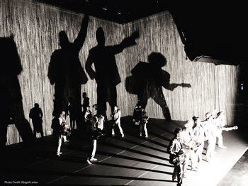 Attired in matching gray suits, gray shirts, bare feet, and bearing strapped-on instruments, the uniformity of the musicians gives an impression of a classy-looking marching band, and the virtuosity of the numerous percussionists evokes the explosive sounds that emanate from a drum and bugle corps. In addition to half a dozen on percussion (Jacquelene Acevedo, Gustavo Di Dalva, Daniel Freedman, Tim Keiper, co-music director Mauro Refosco, Stéphane San Juan), Byrne is joined on guitar by Angie Swan and Bobby Wooten on bass, and co-music director Karl Mansfield on keyboard. Featured vocalists and dancers are Chris Giarmo and Tendayi Kuumba, although everyone in the band sings and is in constant motion around the stage. Parson's inventive choreography, the many moves of which give Giarmo and Kuumba a machine-like (in a good way) quality, and the instrumental underpinnings of American Utopia are the ultimate reasons to recommend the show. Byrne is a down-to-earth host, guiding the audience through his musical journey and pointing out discoveries along the way, and it was very clear to me (a Byrne neophyte) that his audience is a devoted one. He explores himself and his adopted country (he became a U.S. citizen in 2012) through his music and lyrics, positing that both are works in progress. While not noticeably political, the show contains statements about immigration and inclusiveness. All but one of the musical numbers are Byrne originals, the majority penned with long-time collaborator Brian Eno. However, arguably one of the most powerful songs is "Hell You Talmabout" by Janelle Monae, a rhythmic protest anthem that names several African Americans who died as a result of encounters with law enforcement and/or racial violence, and encourages the audience to echo back their names. At the other end of the audience participation spectrum, little encouragement was needed to get everyone on their feet to bounce and dance to the infectious beat of "Burning Down the House." The show begins with Byrne seated at a table on a bare stage, bathed in a beam of light. Throughout the first song ("Here"), he examines a model of a brain, as curtains of chains are slowly raised from the floor to the top of the proscenium on all three sides. That's it in terms of "set decoration," but layer upon layer of light (Rob Sinclair) and sound (Pete Keppler) design enhance the experience while never distracting from the main event. As the program nears its conclusion, Byrne makes a brief speech about being a work in progress and how we are all connected. The curtains are drawn up to the ceiling, again revealing the bare walls, and the entire ensemble performs "One Fine Day" (Byrne/Eno) a cappella, perhaps to imply that simplicity is the key that unlocks Utopia. David Byrne's American Utopia, runs through September 28, 2019, at Emerson Colonial Theatre, 106 Boylston Street, Boston MA. For tickets and information, call 888-616-0272 or visit www.EmersonColonialTheatre.com. Featuring: David Byrne, Jacquelene Acevedo, Gustavo Di Dalva, Daniel Freedman, Chris Giarmo, Tim Keiper, Tendayi Kuumba, Karl Mansfield, Mauro Refosco, Stéphane San Juan, Angie Swan, Bobby Wooten III Choreography and Musical Staging by Annie-B Parson; Production Consultant, Alex Timbers; Associate Choreographer, Elizabeth Dement; Production Stage Manager, Gregory T. Livoti; Stage Manager, Julie DeVore; Lighting Design, Rob Sinclair; Sound Design, Pete Keppler; Music Director, Karl Mansfield, Mauro Refosco |