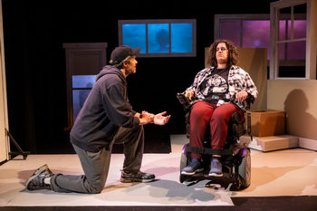 The question comes from John, a PhD student with cerebral palsy as he interviews a potential home aide to help him out. It's a question that resonates throughout Martyna Majok's Cost of Living, in which four people, all striving to make the best of difficult circumstances, struggle to articulate what they need from each other. Each of Majok's characters, in their own way, has lived a life. SpeakEasy Stage Company's production of Cost of Living marks the play's Boston premiere, following its Pulitzer Prize for Drama in 2018 and a run on Broadway in 2022. Director Alex Lonati lends this staging a warmth and sensitivity that matches Majok's lean but muscular depiction of her quartet of isolated characters, as they navigate what they're able to give and how much they're willing to receive in return. Jess (Gina Fonseca), for instance, assures John (Sean Leviashvili) during their interview that she has plenty of life experience to offer him. John has the means to hire her to do "whatever I need, within reason." But he wants to make sure she's the right fit for his specific care needs. And he has lots of questions for Jess, who tries to deflect from why she works late nights at various bars after graduating from Princeton with honors. We can intuit, as she asks what "whatever I need" really means, that she's been in situations before where the boundaries were blurred. As this professional relationship develops, Majok interweaves their scenes with Eddie (Lewis D. Wheeler) and his estranged ex-wife Ani (Stephanie Gould), who is now a quadriplegic after an accident severely injured her spinal cord. Ani hasn't seen Eddie for six months–until one day, he comes to her home to collect some of his things. She's furious at his reappearance, coming back into her life after such a long absence during her hospitalization–and furious that he left in the first place. But Eddie, ever the gallant ex, talks her into a trial week where he plays caregiver, and she accepts, begrudgingly. There's a difference to how these pairs approach the intimacy of their caregiving relationships. When Jess helps John with his shower each morning, it appears routine; but Eddie giving Ani a sponge bath opens up long-suppressed feelings that emerge. Majok fills these delicate scenes with plenty of silence–spaces where the unspoken dialogue underscoring each routine conversation almost feels audible. While the intrinsic power imbalance of living with a disability, and the help it requires, is clear, Majok also examines how this dynamic shifts when things like class, upbringing, financial stability come into the mix. Jess's walls go up when John probes her on her job history. After all, he's the one with the nice apartment and a free ride for his PhD. "It matters who you are and what you have," she tells him. Don't assume you know me based on my resume. Then's there the looming specter of healthcare costs. Our characters live in North Jersey, but they could be in any college town, where there are many Eddies desperate for their next employment, or Jesses who graduate from Ivy League schools but with no generational wealth to fall back on when times get tough. Though Ani prefers full-time treatment from her nurse, having Eddie help out for free is a more reasonable financial option. John and Ani are both played by actors who have disabilities in compelling and unexpected performances. Leviashvili's John is often disarming, with a sly (and sometimes off-putting) sense of humor that seeks to throw Jess off her presumptions. He has the cockiness that comes from money–and a seeming obliviousness to those who are not on his level. Gould, in my favorite performance of the cast, is wickedly funny and strong-willed as Ani. She's a true Jersey girl through and through, adept at weaponizing a spiky tongue and a fleet of four-letter words to assert her space and keep others at a comfortable distance. Wheeler and Fonseca are also excellent, Wheeler in particular inviting us in with a masterful opening monologue in which Eddie bears his past mistakes, his grief, and his need to engage with a stranger at a bar. Fonseca as Jess has her guard up and her defenses high, but like everyone else, she's looking to catch a break, hoping the world will show her some grace. The final destination for Cost of Living ends up feeling pat and tidy, compared to everything that precedes it. But ultimately, Majok's play depends more on connection than conflict, the ways we come together despite our inner voices urging us not to. Each of her characters has withdrawn from the world, largely due to circumstances beyond their control. In Eddie's former life as a truck driver, he had nothing but time to himself just to think. "That life is good... Except the loneliness," he recalls. "We're all of us, in motels, on the road to somewhere we ain't at yet." Maybe, soon enough, each one of us will end up somewhere new, doing our best to keep the loneliness at bay for a little while. Cost of Living, a SpeakEasy Stage Company production, runs through March 30, 2024, at Boston Center for the Arts, 527 Tremont St., Boston MA. For tickets and information, please visit speakeasystage.com, call 617-933-8600, or visit the box office at the Boston Center for the Arts. Cast: Creative Team: |