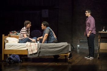 Fun Home details Bechdel's pre-adolescent years as she begins to understand her sexual orientation and gender identity, her coming out as a lesbian at age 19, and her observations of her father's ultimately unsuccessful attempts to reconcile his attraction to men with the role of a small-town husband and father. At age 10, young Alison realizes she's uncomfortable wearing dresses. Not much later, she notices and finds she's attracted to a masculine-looking delivery woman. Concurrently, she also begins to notice signs of her father's interest in men, a situation that becomes all too evident after her father Bruce is convicted of providing alcohol to a minor boy in a botched seduction attempt. It's not until Alison goes away to collegethe historically progressive Oberlin College in Ohiothat she comes out as a lesbian. Meanwhile, her father's inability to accept his own orientation becomes untenable. Not long after Alison's coming out, he takes his own life. Not easy subject matter for an art form that is more quickly identified with light comedies and romance, but what's even more impressive about Fun Home than its "serious" content is the way it feels totally genuine and authentic throughout. There's never a moment that feels contrived or forced. It always feels like we are inside Alison's mind and heartexperiencing exactly what she felt while reflecting on events in the lives of herself and family. Fun Home is artful in the way it moves freely in time between Alison's memories from ages 10 and 19 and her active recollections of events in the present as she is writing and drawing her graphic novel, but it's never arty. We always feel the words by Kron and the alternately soulful and exuberant music by Tesori are in service of the ideasnot to show off, or to provide entertainment value. I can't think of another Broadway musicalnot even the greatest works of Rodgers and Hammerstein, Stephen Sondheim, or the much-admired Hamiltonthat feels as personal and un-self-conscious. Fun Home is, impressively, the first Broadway musical with a lesbian as its central character, but Alison's journey of coming out is resonant for gay men as well. While the specifics of Alison's first recognition of attraction to womenher sighting of the delivery woman carrying the "Ring of Keys" as described in the song of that titleher attendant emotions are recognizable. And her feelings of first lovefor her college classmate Joanare giddily and awkwardly expressed in the lyrics "I'm changing my major to Joan" in a way that's accurate for gay men and women. Surely first love is giddy for all, but for those who didn't believe the sort of love they desired would be possible for themthat there could be someone of their gender attractive to them that would be attracted backfirst love is especially sweet. Griffin, always a strong director of actors, has a cast that is up to the challenges of this material. His adult Alison is the formidable Danni Smith, who over recent years has evolved from storefront theater discovery to one of the city's top Equity musical theater actresses. Smith is a musical theater chameleon, able to move between roles as diverse as Passion's Fosca or Man of La Mancha's Aldonza to Patsy Cline, Mary Magdalene, or The Wild Party's Queenie. As the somewhat detached narrator of Fun Home, we don't get to see much of Smith's range until late in the show when the adult Alison tries desperately to understand and connect with her father in the songs "Telephone Wire," and the finale, "Flying." When she gets to that moment, though, there's an intensity that fully communicates Bechdel's pain in trying to reconcile the life-affirming nature of her own coming out with the way her father's closeted nature killed him. Smith brings it all home at that pointthe mixture of pain alongside Alison's personal joy all bubbles over. Rob Lindley's take on Alison's father is as a quirky and tense man, one that surely would have stood out at least a little in a small rural town like Beech Creek, Pennsylvania. It's another great notch in a career that includes heavy dramatic roles (like Prior Walter in Angels in America at Court Theater) with musical theater. He's more than up to the dramatic and musical challenges here. Another Chicago musical theater vet with significant acting chops, McKinley Carter, plays the wife and mother Helen, and through Carter we see the pain and emptiness of a woman, who through no fault of her own, suffers from an increasing physical and emotional distance from her closeted husband. Chicago audiences expect good work from Smith, Lindley and Carter, but this production also includes an astonishing performance by Hannah Starr as "Medium Alison," the 19-year-old who finds herself in love with Joan. In many ways, this is the most important role in the show, depicting the time in Alison's life when she took the biggest steps in her journey. Starr conveys all the youthful energy of the 19-year-oldthe anxiety and the euphoria of her coming out and falling in love, the disappointment toward her parents for not being supportive and her uncertain reaction about learning more about her father's issues. Starr shows us all this in a performance that is highly watchable and entertaining. The unit set by Yu Shibagaki is minimaljust a bare brick wall upstage and a few pieces of furniture. We don't see the elaborate, museum-like collection of paintings, antique furniture and vases that are mentioned in the dialogue. We have to imagine the ornate décor of the home that Bruce has his family continually polish, and thus the production misses the chance to show us just exactly how passionate Bruce is about home restoration. It may be that Griffin wanted to avoid a particular gay male stereotype of obsession over home furnishings, particularly those evoking earlier eras. Or maybe it was just budget considerations. Bruce's story is a tragedy, for sure. While it's upsetting to see that Bruce never is shown to even consider