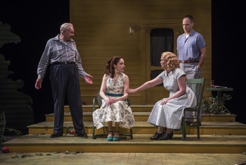The actors are those playing the neighbors and friends of the Kellers, the family whose family business was blamed for supplying the U.S. military with defective engines for fighter jets during World War II. Those who know the play will understand the pointthe actions of one family (or one person) impact all in our community. Those who are new to All My Sons may find it distracting. (At one point, it's even unintentionally comicwhen one character asks, "where's Jim Bayliss," while Jim is standing in full view on stage.) So, to return to the original question, "is it necessary to impose a directorial concept on an Arthur Miller play," or more specifically, "did Newell need to do this?" No, certainly not with as fine a cast and performances as he has here. His symbolic blocking of putting offstage characters on stage doesn't mar the overall power of the acting or the worth of this production, but it doesn't add to it either. Miller is very explicit in his message in All My Sons that individual actions affect others and that we have a responsibility to our community as much as to ourselves and our families. I don't think it needs that additional visual reinforcement. But enough on that. This exceptional cast is led by the powerful John Judd as Joe Keller, the factory owner who was accused and acquitted (on appeal) of manufacturing defective engines, but never really exonerated. Judd's Joe seems a bit broken and partially defeated at the outset. He's struggling to return to normalcy after the war, despite the wartime loss of his son Larry and the insistence of his wife Kate that Larry, who went MIA three years earlier, is still alive. Judd plays Joe as a wounded lion who turns ferocious when cornered. Kate Collins's Kate Keller seems quite crazy at the outset, but with mood swings to rationality and back to insanity. It's an off-putting performance, but it does succeed in painting Kate as a controlling figure who may have unwittingly contributed to Joe's drive for financial success and security that resulted in his decision to ship defective engines. We very much get the sense that Kate's controlling nature is holding the family back from dealing with their tragedies and that she is complicit in their crimes. Timothy Edward Kane is a suitably upright, morally grounded Chris Keller, the surviving son. His initial belief in and love for his parents is evident and Kane skillfully shows his descent into disillusionment as he learns of the failings. Judd, Collins and Kane hold nothing back as the drama winds to its final confrontations. I would expect no less from these three actors, but the real revelation for me is Heidi Kettenring as Ann Deever, the former girl next door who was engaged to Larry and with whom Chris has been corresponding since Larry's death. Though Kettenring has done straight dramatic work, I knew her mostly from her turns as a musical theatre actress, where she's consistently strong in roles that don't require this sort of range. Her performance in All My Sons was for me the focal point of the story. Her Ann, whom Chris has invited to the Keller home with the intention of proposing marriage, is grounded, and kind but strong. Ann is really our surrogate. She has fewer illusions about the past and more readily accepts the truth, as she learns it, than do the Kellers. Ultimately, she is the one who will help the Kellers move on with what's left of their lives. Dan Waller is Ann's brother George, who believes Joe to be the guilty party but is briefly convinced otherwise by his lifetime friends, the Kellers. Waller's George enters in a state that appears clinically anxioushaving just met with his father in prison and travelling to the Keller home to stop Ann from agreeing to marry Chris. He struck me as over-the-top unstable, but his take does make it easier to believe the Kellers could manipulate him when they briefly convince him of Joe's innocence. There's uniformly strong work from the rest of the cast. Karl Hamilton is Jim Bayliss, the family physician bored with his work and wanting something more fulfilling if less profitable. As Sue Bayliss, Johanna McKenzie Miller projects the necessary dark nuance of the wife who hopes he will keep making money. Bradford Ryan Lund captures the goofiness of the horoscope-obsessed neighbor Frank Lubey, while Abby Pierce is sweetly flirtatious as his wife who would rather be married to someone else. Charlie Herman and Gabe Korzatkowski alternate as the young neighbor boy Bert, a role some productions cut to avoid the special needs of hiring a child actor. John Culbert's set is a series of three suggestive rather than realistic cut-out facades of the Keller home, and partial facades of the two next-door neighbors' homes. Seeing the neighboring homes as well as the Kellers' house, even though no action occurs in the flanking houses, is a subtle but effective way of reinforcing Miller's theme that we are all connected to each other. More effective and less distracting, I'd argue, than the business of having off-stage characters standing on stage. One can't blame directors for wanting to dig just a bit deeper into classics like All My Sons. Through his takes on the characters, so effectively delivered by this exceptional cast, Newell does that. But more when they're talking rather than standing around. All My Sons, through February 18, 2018, at the Court Theatre, 5535 S. Ellis Ave., Chicago IL. For tickets and further information, visit www.courttheatre.org or call 773-753-4472. |