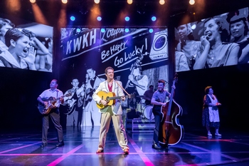 Now Mutrux is back with Heartbreak Hotel, a book musical that details the early career of Presley. Sam Phillips, the owner of the first label to record Presley, is a major character: and Dewey Phillips is the narrator. Carl Perkins, whose "Blue Suede Shoes" Presley covered and made into a major hit, is mentioned in the dialogue. Heartbreak Hotel is a more ambitious piece than Million Dollar Quartet, with a more expansive story, a larger cast, and more elaborate production values. It seeks to be more than an Elvis tribute show, but that's where it's most successful. Their Elvis is Eddie Clendening, who played Presley in the original cast of the long running Chicago production of Million Dollar Quartet and then reprised the role for the Broadway production. Now, as then, he's a terrific stand-in for Elvislooking and singing like the original without suggesting any of the bad Elvis impersonators we've seen over the years. The songs from Presley's early career are ably backed up by the performers playing The Blue Moon Boys: Matt Codina as Scotty Moore, Zach Lentino as Bill Black, and Jamie Pittle as D.J. Fontana. The music is directed by Tom Vendafreddo. Many of the songs are danced as well, thanks to the bright choreography by Birgitte Bjorum. Mutrux's script, which he directs, gives credit to the African-American musical roots of rock and roll. After an initial framing device depicting Presley's 1968 "comeback" TV special, the Dewey Phillips character introduces songs said to have influenced Presley. Katherine Lee Bourné, as Sister Rosetta Tharpe, belts out a powerful "Strange Things Happening Everyday." It's followed by an equally impressive "Wild, Wild Young Men" by Takesha Meshé Kizart as Ruth Brown. Mutrux's staging moves slickly through 1954-57 with Adam Koch's simple unit and rolling set pieces taking us through the stages and studios of the era, along with historical projections designed by Daniel Brodie and consistently surprising lighting effects by Jason Lyons. It's all a sharp, showman-like presentation of the rock music of the era that ought to (and seemed to on the night I attended) more than satisfy its core audience. Colte Julian as Dewey Phillips narrates the bridges between the story and the songs and he does so with charm and humorsuggestive of the Huey Calhoun character inspired by Dewey Phillips in Memphis. And no, this character does not say "hock-a-doo"that was an invention by Di Pietro for Huey. Heartbreak Hotel isn't as successful as drama, though it makes a good attempt. Presley's career, which we're told led him to sell out people who had helped him (Sam Phillips, Scotty Moore) or loved him (girlfriend Dixie Locke), is suggested to be something of a Faustian bargain. (One of the characters even mentions the Faust story). Mutrux doesn't take it far enough, though. It may be he didn't want to demonize the iconic Presley, but he suggests the young Elvis was too naïve to completely understand the choices he was making. The devil in this story is Presley's legendary manager, "Colonel" Tom Parker, played here with juicy relish by Jerry Kernion. He's an entertaining character of the sort one loves to hate, but the script doesn't sufficiently explain who he is or how he came to be so powerful over Elvis. Parker's opposite number is the record producer Sam Phillips, played as a street-smart but kind father figure by Matt McKenzie. Presley's supportive girlfriend is sweetly played by Erin Burniston, with him from the lean times to the good times, until his infidelities and celebrity get to be too much for her. The dilemma facing Mutrux or anyone else doing a bio of a much-loved musical performer is balancing the songs with the story, and let's be honest, the songs are what sell the tickets and the songs are going to win. As a result, the scenes have to economically convey the story. Mutrux's dialogue gets either too expositional or is too quick to cover big moments, like the breakup with Dixie and with Sam Phillips and Sun Records, in emotional scenes that haven't been sufficiently earned. As a result, the scenes feel perfunctory and a bit phony. There's a promising idea for a drama herethe battle for Elvis's soul between Tom Parker and Sam Phillipsbut it's insufficiently developed in favor of the musical numbers. Realistically, though, maybe the true believers who would be most interested in Heartbreak Hotel know the story alreadyor know as much as they want to. This musical gives such audiences more context than a tribute concert would, and in the hands of Clendening and this singing, dancing, and musical instrument-playing ensemble, those audiences will get what they're most looking for. Heartbreak Hotel, through September 30, 2018, at the Broadway Playhouse, 175 E. Chestnut, Chicago IL. Tickets are on sale at www.broadwayinchicago.com. |